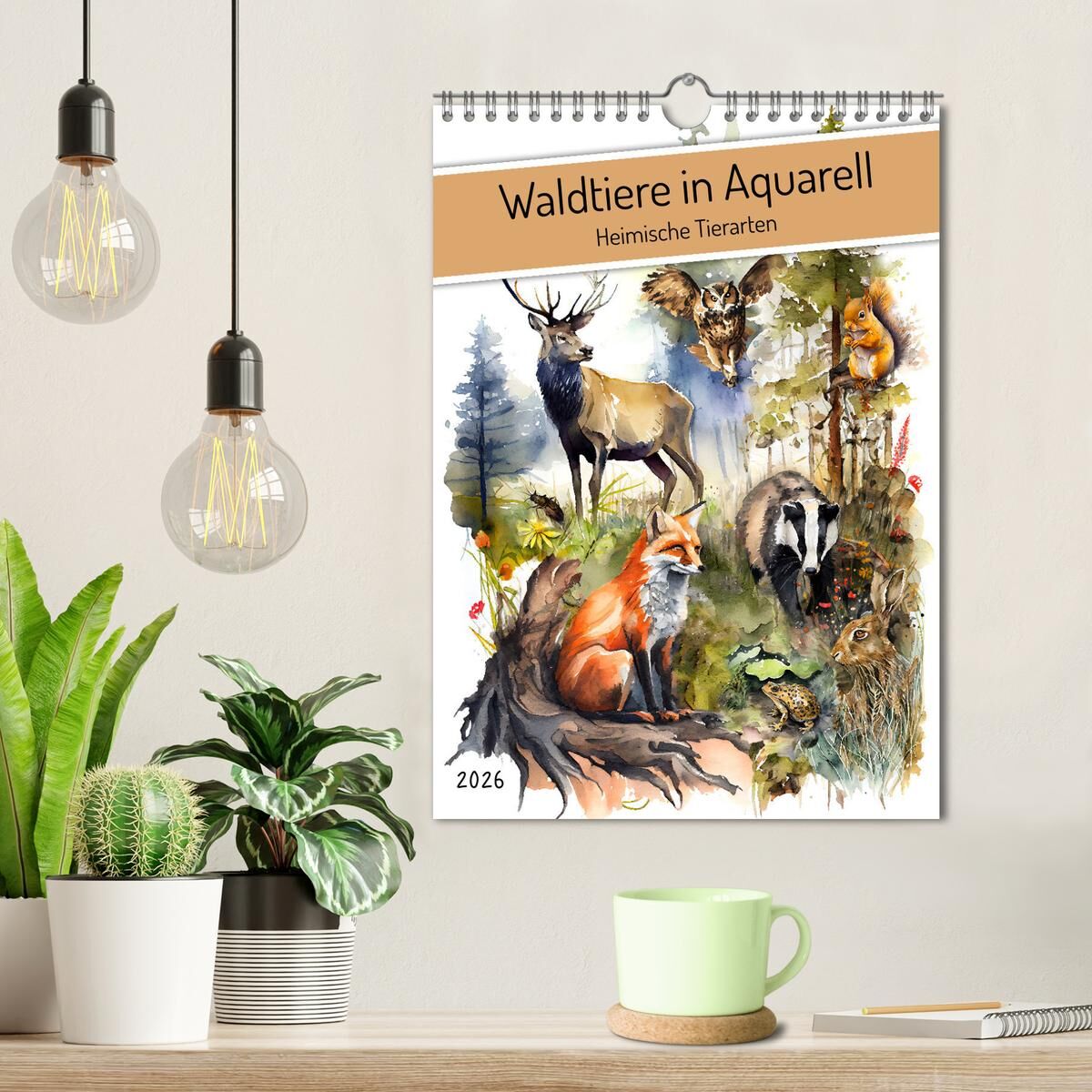 Entdecken Sie mit unserem wunderschönen Aquarell-Kalender für Kinder die einheimischen Waldtiere! Jeden Monat erwarten sie zauberhafte Zeichnungen, die liebevoll und detailreich gestaltet sind. Der Kalender zeigt eine Vielzahl von heimischen Tierarten, darunte...