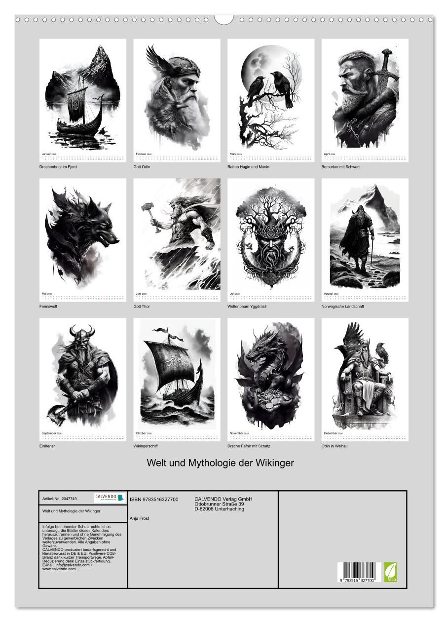 Welt und Mythologie der Wikinger (Wandkalender 2026 DIN A2 hoch), CALVENDO Monatskalender