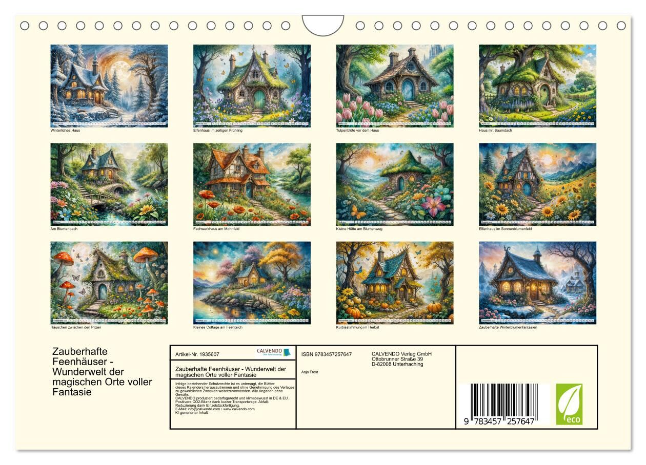 Der Kalender "Zauberhafte Feenhäuser - Wunderwelt der magischen Orte voller Fantasie" entführt Sie Monat für Monat in märchenhafte Landschaften voller Magie. Verwunschene Feenhäuser, blühende Gärten und leuchtende Farben erschaffen eine traumhafte Atmosphäre. ...