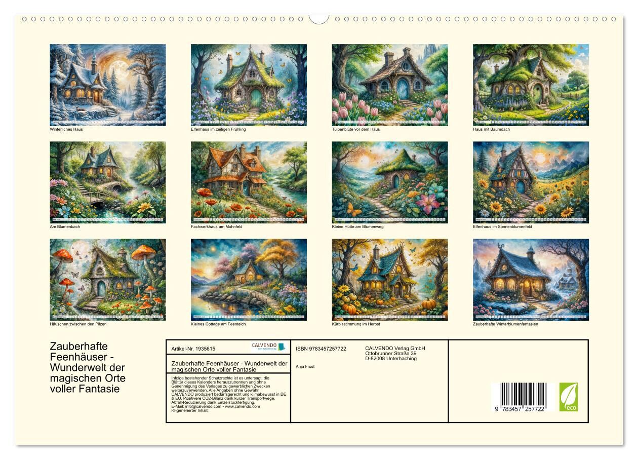 Der Kalender "Zauberhafte Feenhäuser - Wunderwelt der magischen Orte voller Fantasie" entführt Sie Monat für Monat in märchenhafte Landschaften voller Magie. Verwunschene Feenhäuser, blühende Gärten und leuchtende Farben erschaffen eine traumhafte Atmosphäre. ...