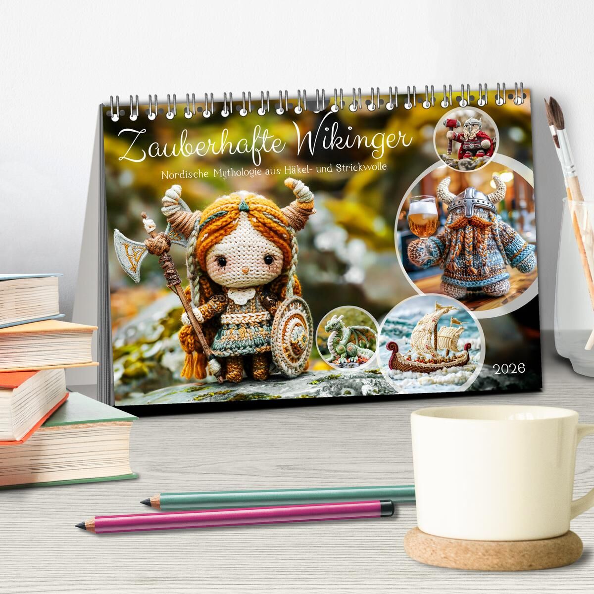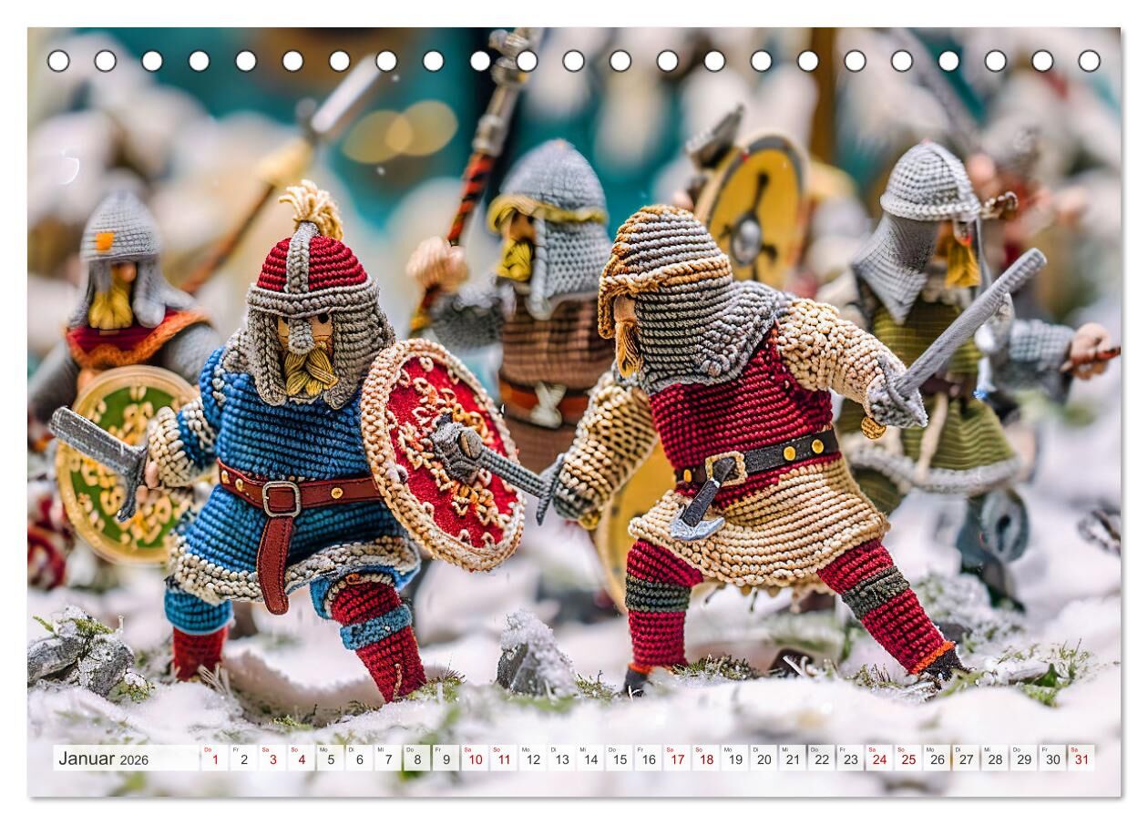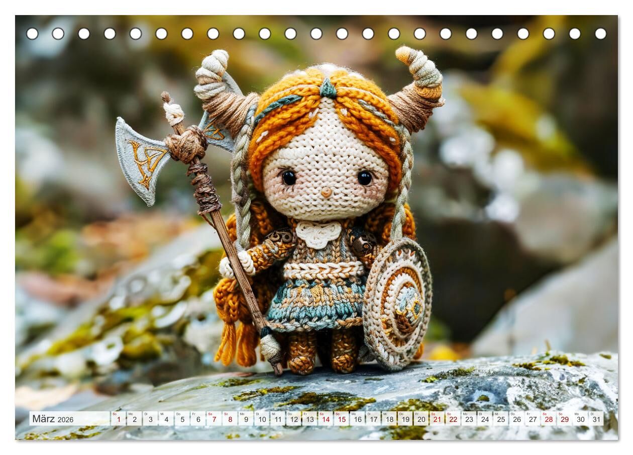 Entdecken Sie die faszinierende Welt der Wikinger mit dem Kalender "Zauberhafte Wikinger - Nordische Mythologie aus Häkel- und Strickwolle". Dieser einzigartige KI-generierte Kalender präsentiert liebevoll handgefertigte Szenen aus der nordischen Mythologie, d...
