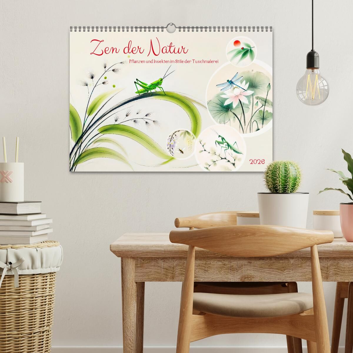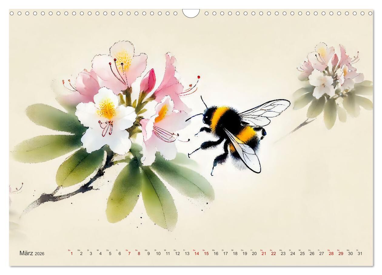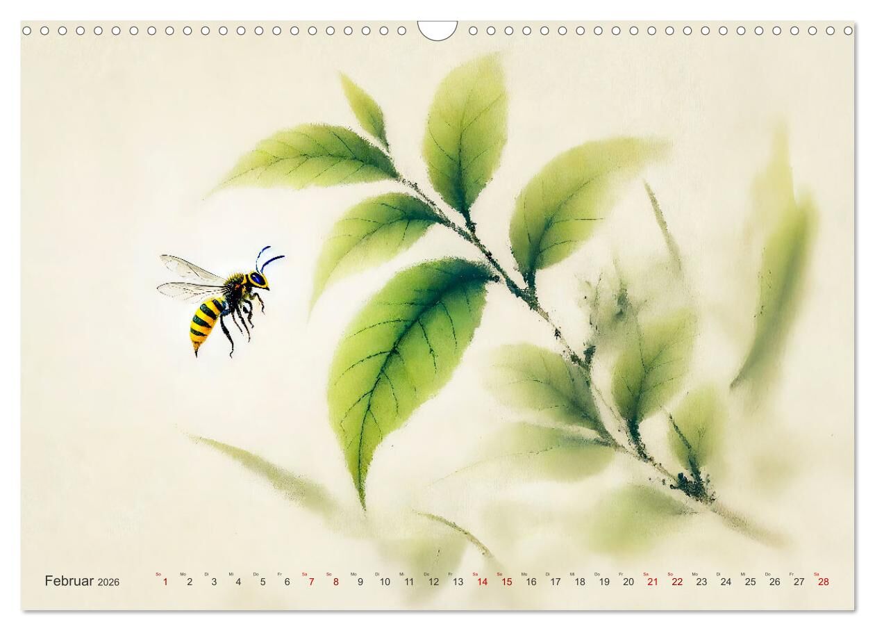 Zen der Natur - Pflanzen und Insekten im Stile der Tuschmalerei (Wandkalender 2026 DIN A3 quer), CALVENDO Monatskalender