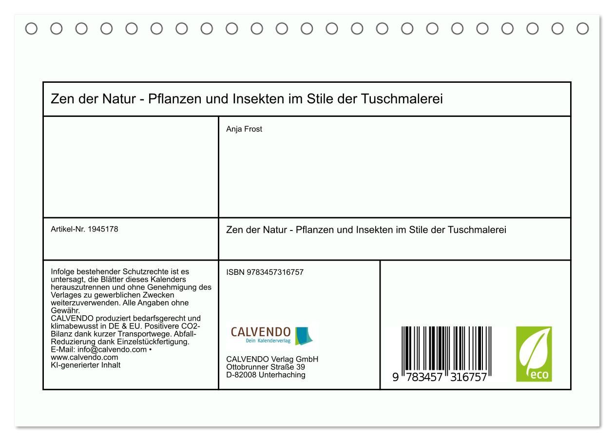 Tauchen Sie ein in die faszinierende Welt der Natur mit unserem Kalender "Zen der Natur". Jede Seite dieses einzigartigen Kalenders zeigt atemberaubende KI-generierten Illustrationen von Pflanzen und Insekten, meisterhaft im traditionellen Stil der Tuschmalere...