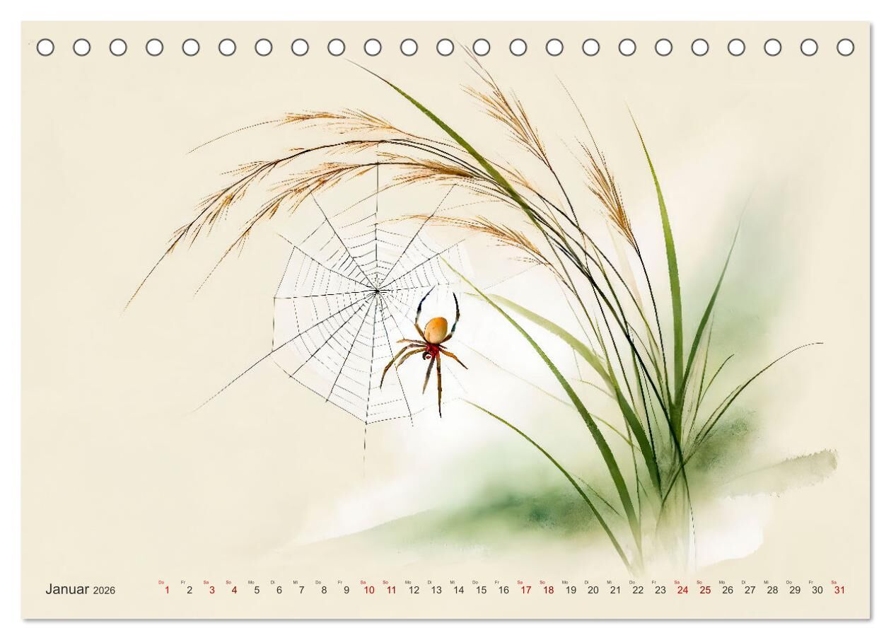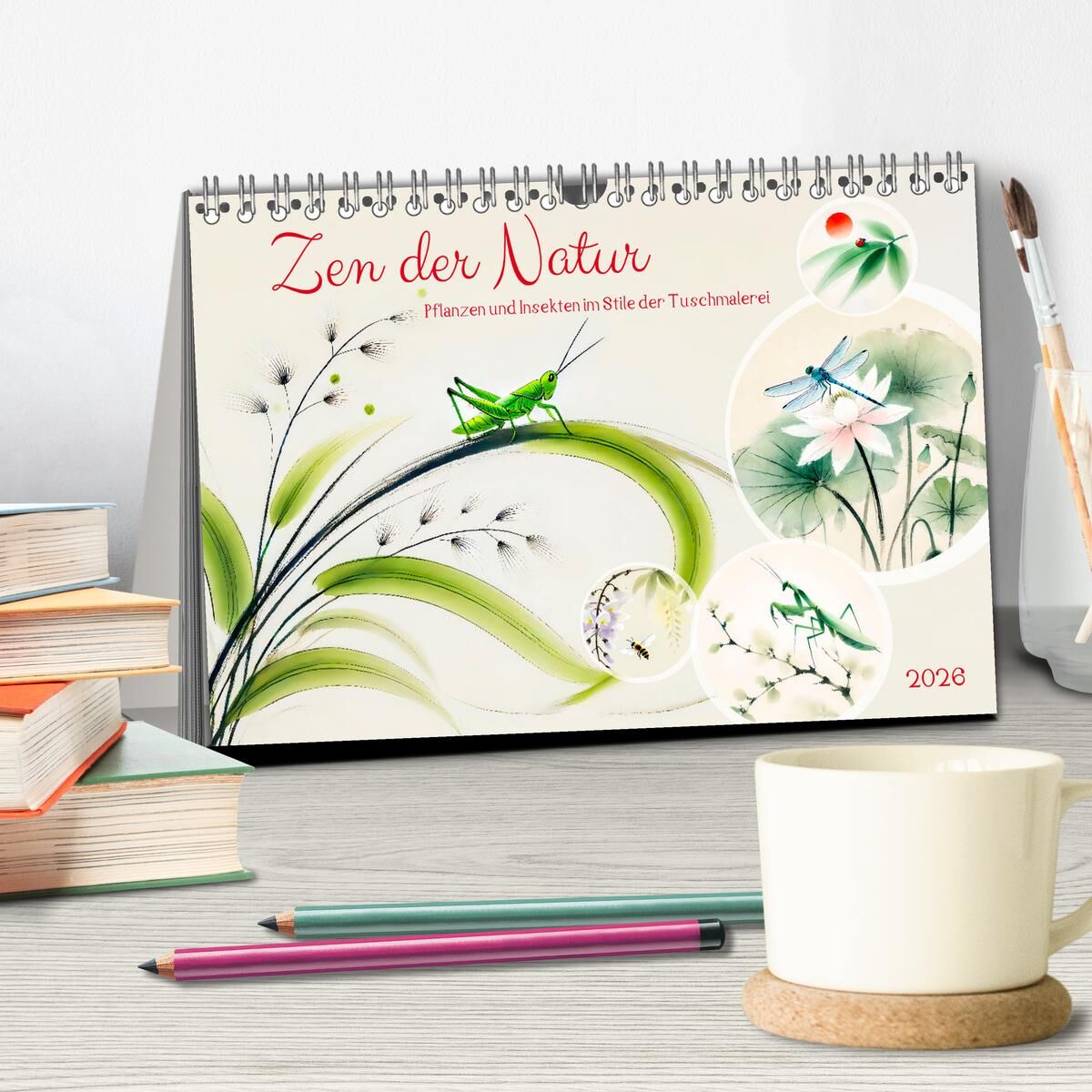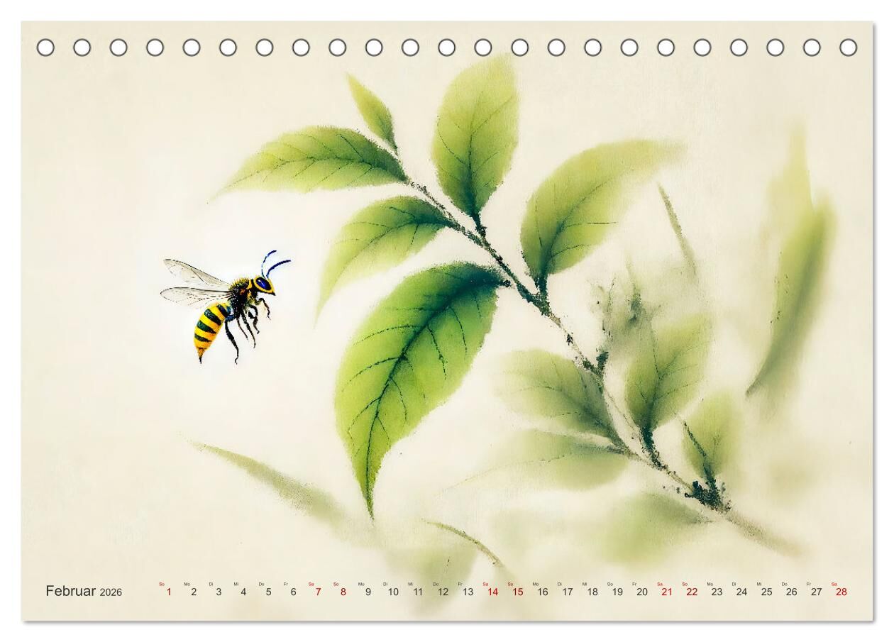 Zen der Natur - Pflanzen und Insekten im Stile der Tuschmalerei (Tischkalender 2026 DIN A5 quer), CALVENDO Monatskalender