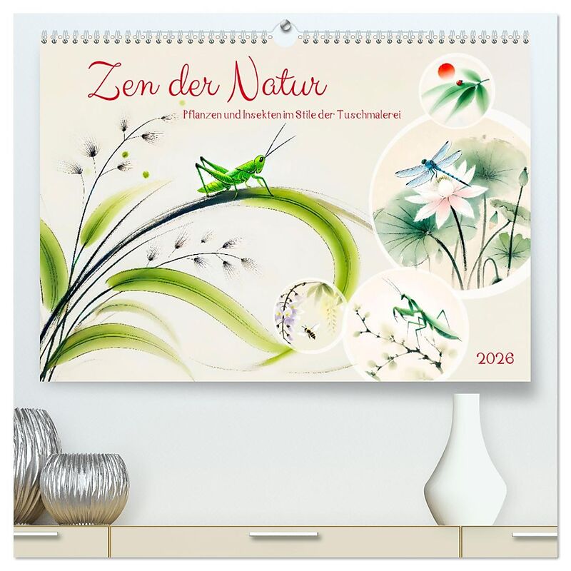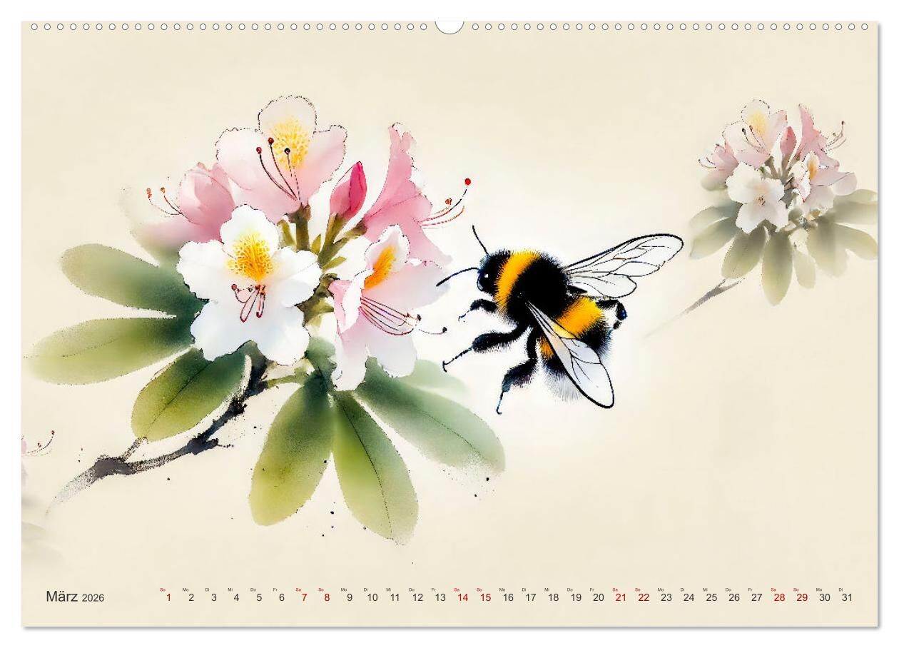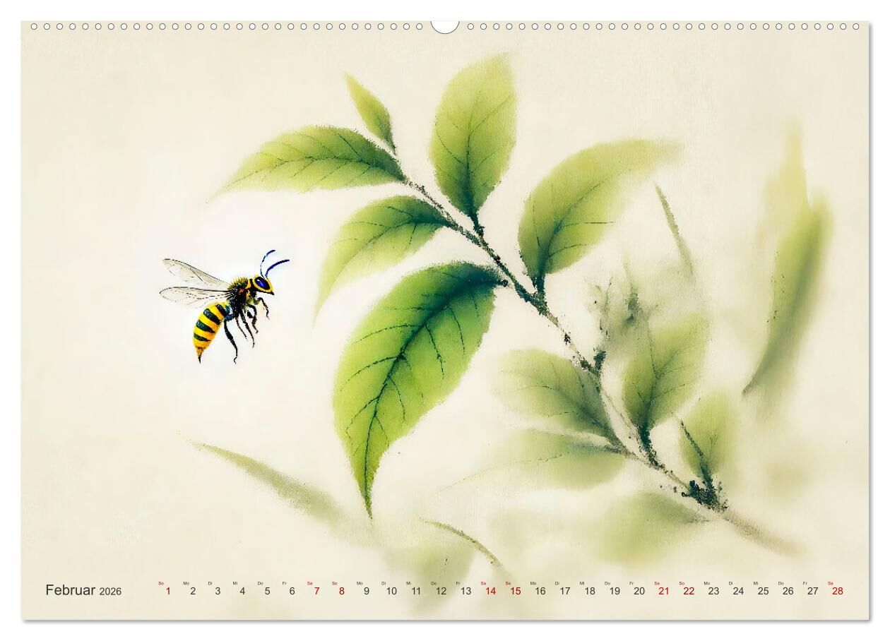 Tauchen Sie ein in die faszinierende Welt der Natur mit unserem Kalender "Zen der Natur". Jede Seite dieses einzigartigen Kalenders zeigt atemberaubende KI-generierten Illustrationen von Pflanzen und Insekten, meisterhaft im traditionellen Stil der Tuschmalere...