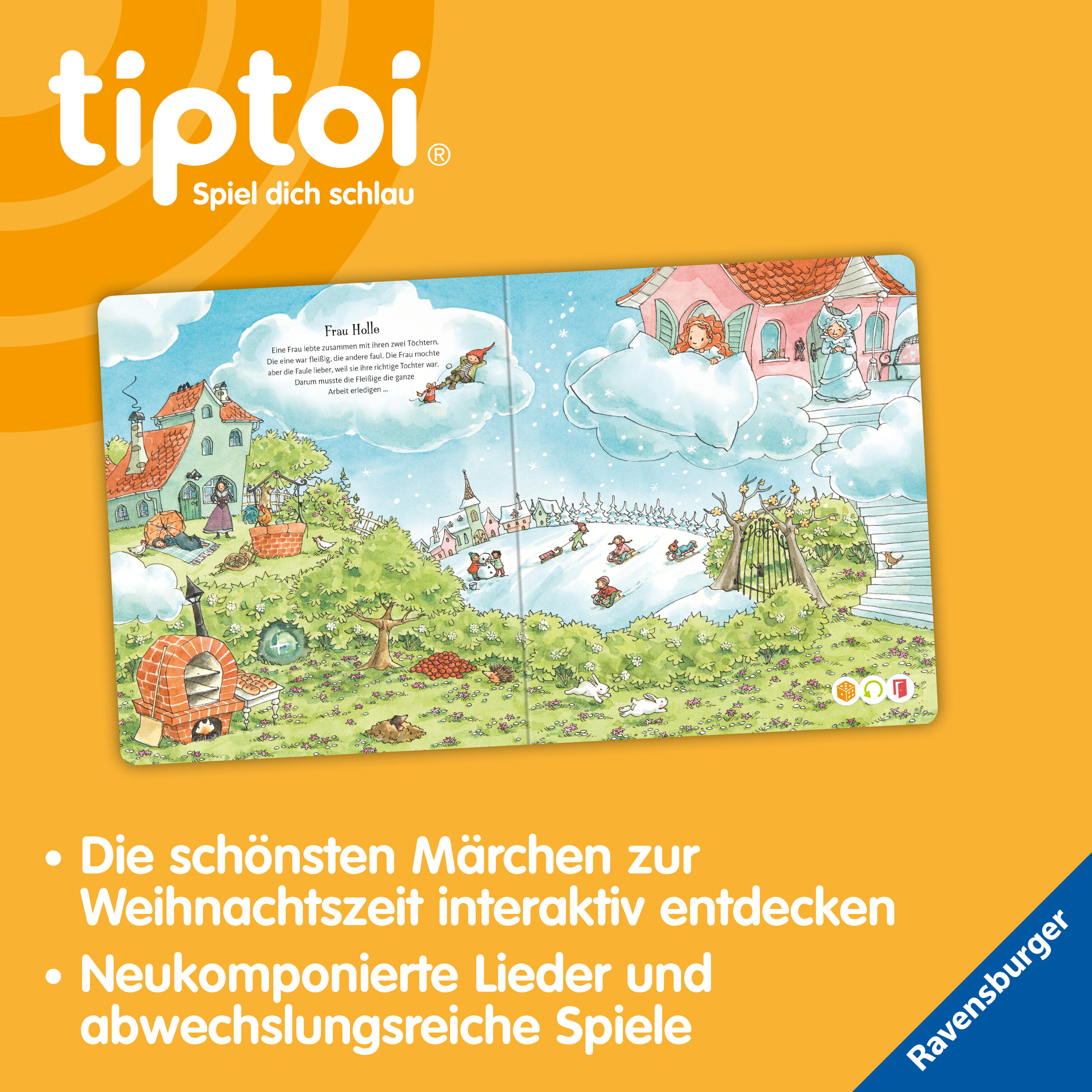Ravensburger 49261 tiptoi® Meine schönsten Weihnachtsmärchen tiptoi Bilderbuch Weihnachtszeit ist Märchenzeit! Frau Holle lässt es schneien, Sterne verwandeln sich in Goldtaler und der tapfere kleine Nussknacker besiegt den Mausekönig in diesem Buch werden die...