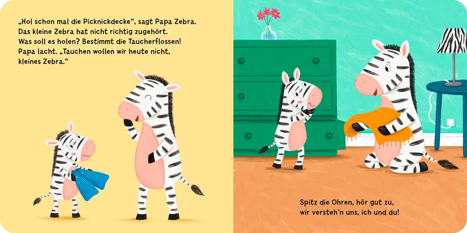 Erste Geschichten über die wichtigsten sozialen Kompetenzen Das kleine Zebra freut sich auf den Ausflug mit Mama und Papa und packt statt der Decke die Taucherflossen ein. Und beim Picknick reden alle durcheinander, sodass das Lieblingsessen der Tiere vertaus...