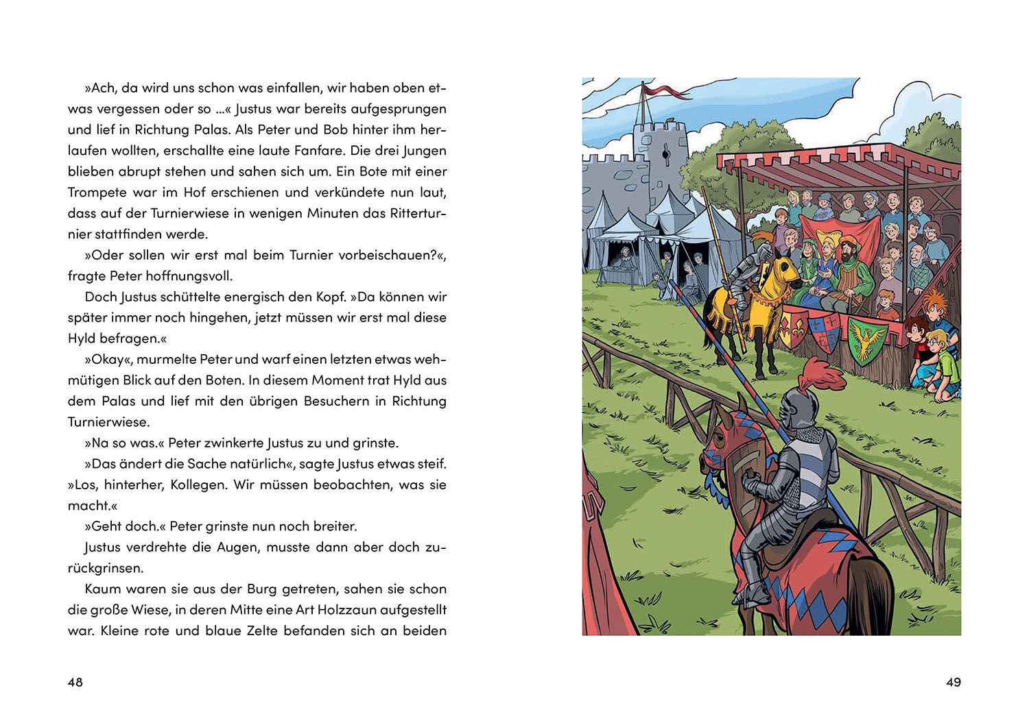 Justus, Peter und Bob sind beste Freunde und Detektive! Zusammen haben die drei ??? schon viele knifflige Fälle gelöst. Wer hat die wertvolle Krone gestohlen? Die drei ??? Justus Jonas, Peter Shaw und Bob Andrews ermitteln in einem Mittelalterpark. Sie verfolg...