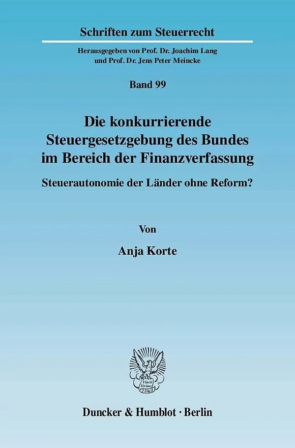 Ist nach der gegenwärtigen Finanzverfassung ein Steuerwettbewerb zwischen den Bundesländern im Bereich der Landessteuern möglich? Dieser durch die Föderalismusdebatte aktuellen Frage widmet sich die Autorin. Ausgehend vom Kompetenztitel des Art. 105 Abs. 2 GG ...