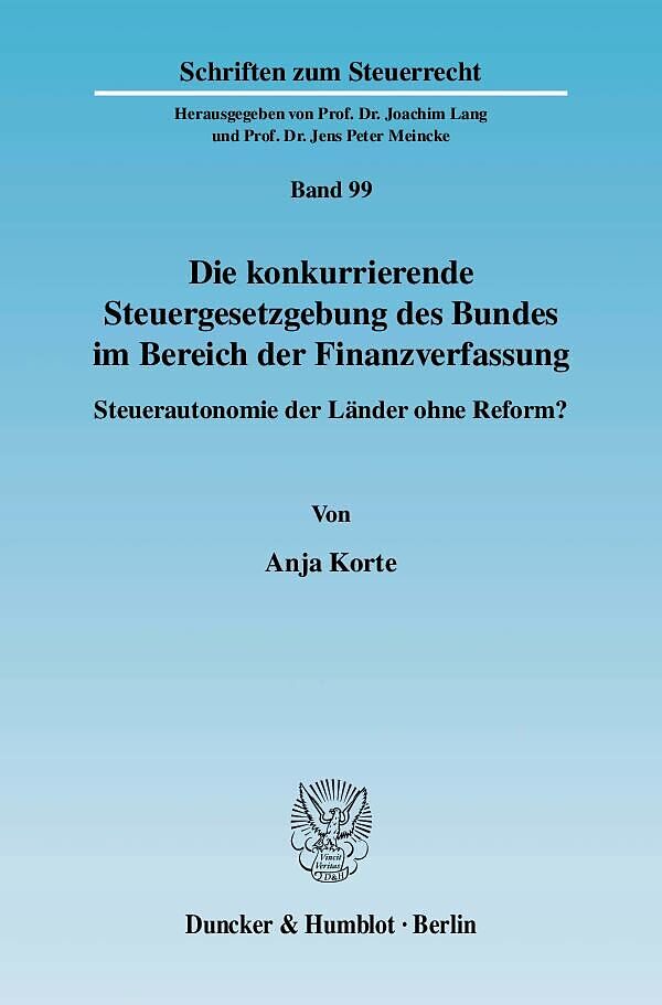 Ist nach der gegenwärtigen Finanzverfassung ein Steuerwettbewerb zwischen den Bundesländern im Bereich der Landessteuern möglich? Dieser durch die Föderalismusdebatte aktuellen Frage widmet sich die Autorin. Ausgehend vom Kompetenztitel des Art. 105 Abs. 2 GG ...