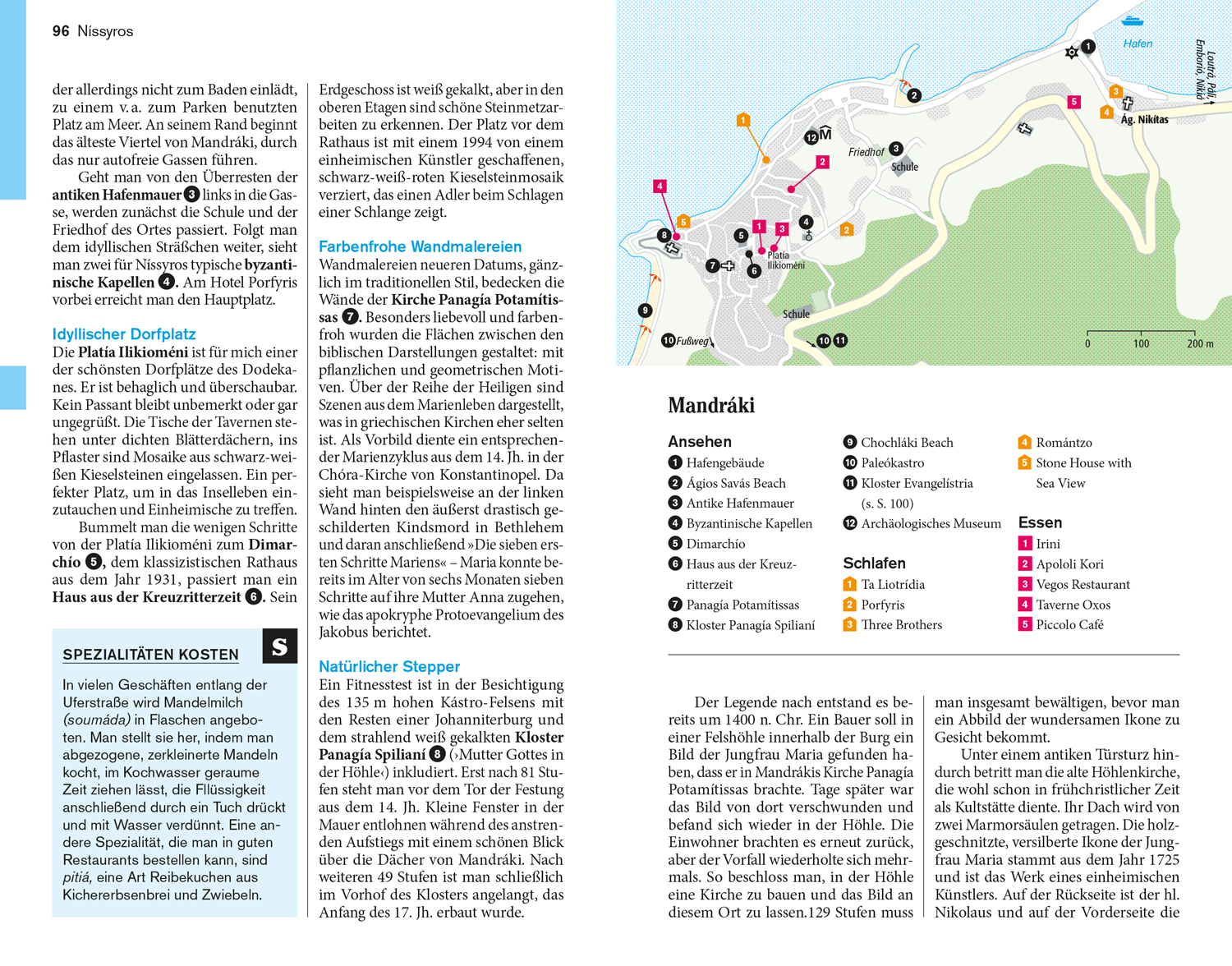 Neben all den großen und kleinen Sehenswürdigkeiten, den Städtchen mit Ferientrubel und Nachtleben, den langen Sandstränden, an denen man baden, kiten und faulenzen oder in einer Taverne frischen Fisch genießen kann, gibt es noch ein andere Seite von Kos: eine stille und authentische. Sie finden sie auf Wanderungen durchs Gebirge, in abgeschiedenen Buchten und bei einsam in der Landschaft stehenden Kirchen. Kos ist eine der meistbesuchten Inseln in der Ägäis. Von hier aus können die Nachbareilande problemlos per Fähre erkundet werden, allerdings benötigt man dafür mehr zeitlichen Spielraum. Während Kos ein klassisches Badeparadies ist und von langen Sandstränden gesäumt wird, kann man auf Níssyros wo Fumarolendämpfe aus einem gewaltigen Vulkankrater dampfen nach Herzenslust wandern. Kálymnos gibt sich felsig, rau und kahl, ein Paradies für Kletterer, Léros und Lipsí sind (fast) unentdeckte Idyllen. Mit wunderbaren Sandstränden punktet auch Pátmos, sein Hauptanziehungspunkt jedoch ist das berühmte Johanneskloster. Und dann besitzt natürlich jede Insel noch ein paar Juwele, die nicht jedem bekannt sind: ein Wanderpfad zu einem einsamen Strand, eine Taverne, die inmitten einer Werft liegt, eine Unterkunft mit Terrasse überm Meer. Genau dorthin gelangen Sie, wenn Sie den Touren und Lieblingsorten von Anja Polanz folgen.