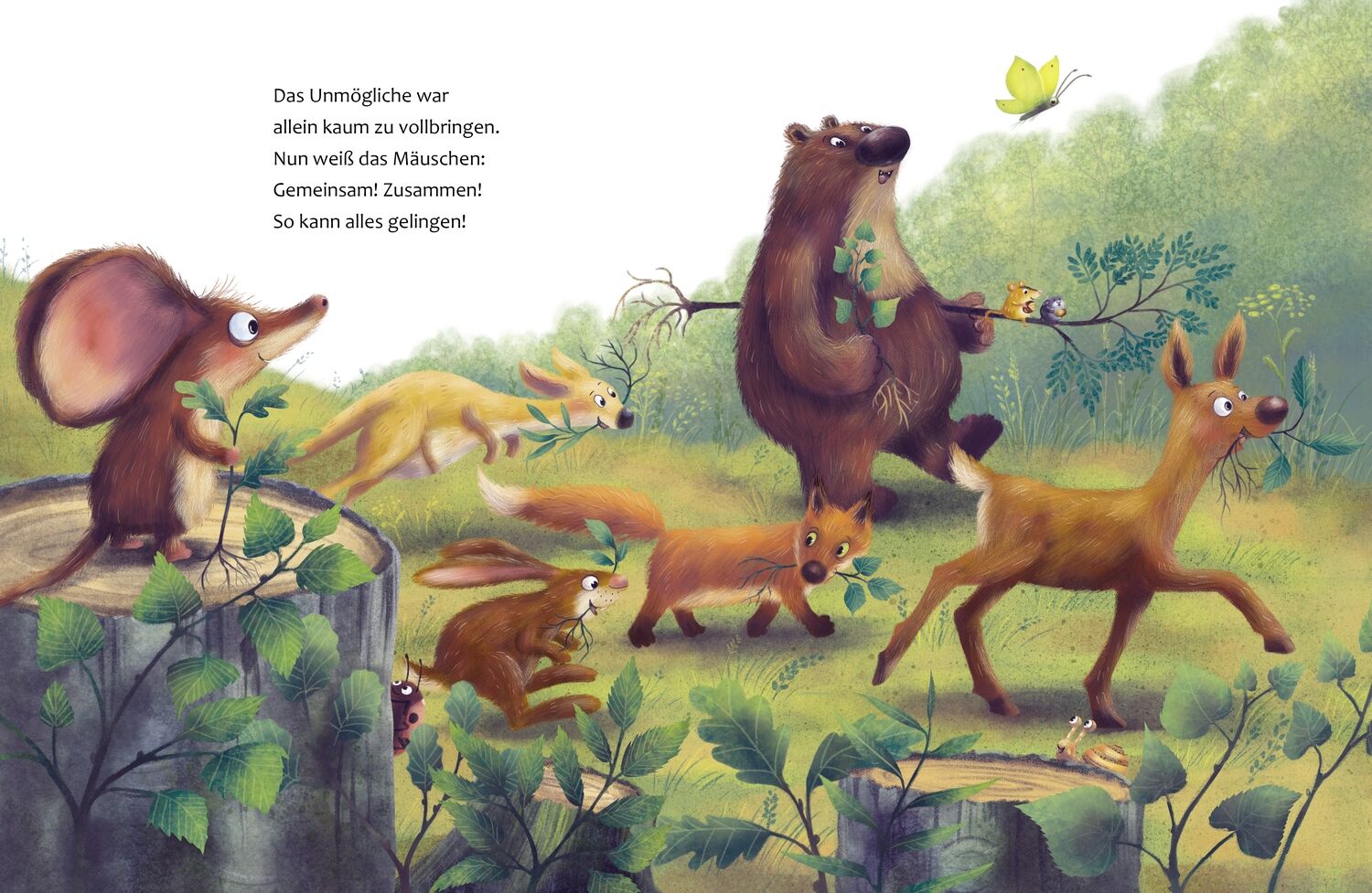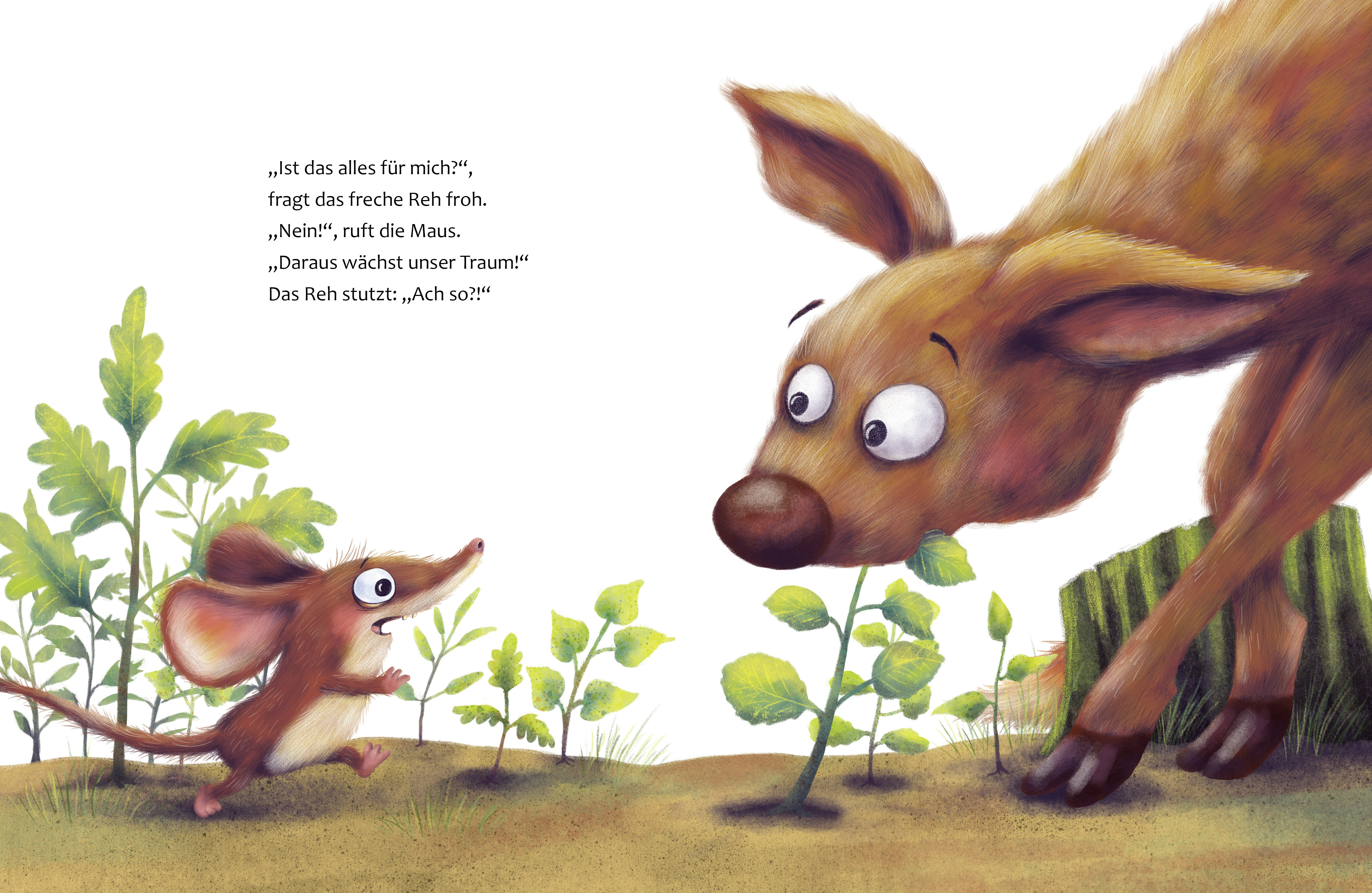 Eine kleine Waldmaus träumt einen Traum - sie möchte mit Eicheln neue Bäume pflanzen. Und steckt damit alle anderen Tiere an. Gemeinsam! Zusammen! So kann es gelingen. Und so wächst dort, wo gerade noch Baumstümpfe standen, bald wieder ein Wald, und mit ihm d...