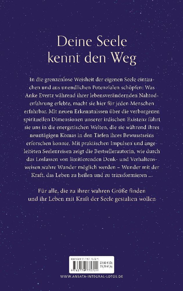 Tauche in die grenzenlose Weisheit deiner Seele ein und schöpfe aus ihren unendlichen Potenzialen erfahre, wer du wirklich bist, und durchlichte dein Leben! Was Anke Evertz während ihrer lebensverändernden Nahtoderfahrung erlebte, ist spannend, Augen öffnend u...