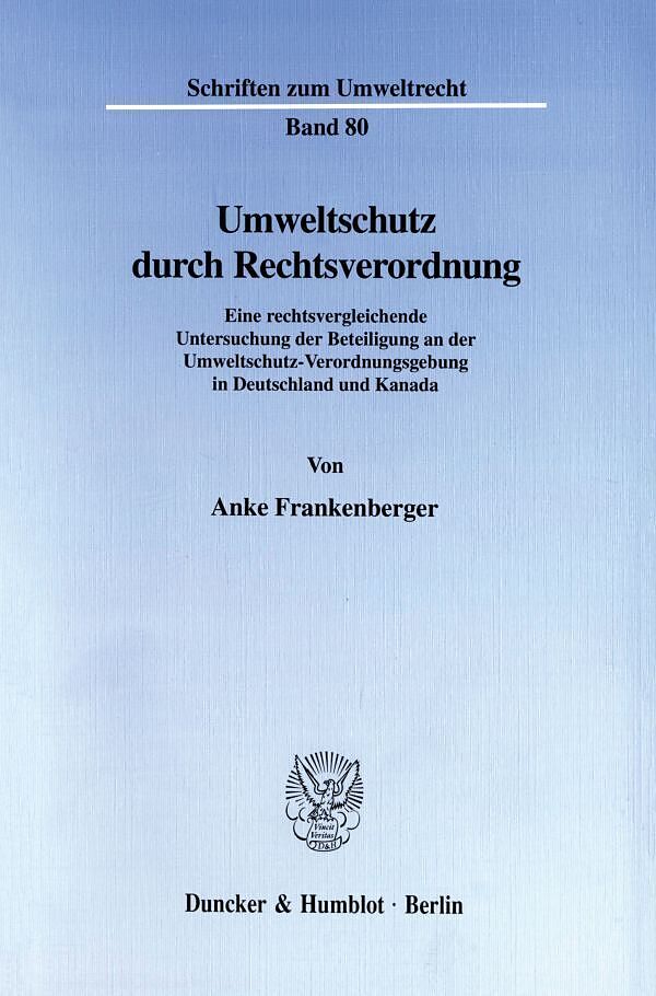 Die Arbeit hat zum Ziel, die Normsetzung der Exekutive stärker in die Rechtsformenlehre zu integrieren. Dazu wird das Verfahren der Verordnungsgebung in Deutschland und Kanada auf dem Gebiet des Umweltschutzes untersucht. Ausgehend von kanadischen Verfahrensge...Die Arbeit hat zum Ziel, die Normsetzung der Exekutive stärker in die Rechtsformenlehre zu integrieren. Dazu wird das Verfahren der Verordnungsgebung in Deutschland und Kanada auf dem Gebiet des Umweltschutzes untersucht. Ausgehend von kanadischen Verfahrensgestaltungen wird ein Vorschlag für verfahrensmäßige Neuordnung im deutschen Recht gemacht. Der Erste Teil berichtet allgemein über Verordnungsgebung im Umweltschutz in Deutschland und Kanada. Die Begriffe der verschiedenen Rechtsnormen, der Mitwirkung und Beteiligung werden geklärt und die rechtlichen Anforderungen an die Verordnungsgebung dargestellt. Im Zweiten Teil wird detailliert über Mitwirkung und Beteiligung an der Umweltschutz-Verordnungsgebung berichtet. Der kanadische Teil enthält zum besseren Verständnis einen Exkurs zur Verordnungsgebung in den USA. Wesentliches Kennzeichen von Beteiligungsverfahren in Kanada ist die Stakeholder Beteiligung, eine Beteiligung von Interessengruppen mit fließenden Grenzen zur Popularbeteiligung. Es werden Verfahren des kanadischen Umweltministeriums (z. B. Strategic Options Process) und diverse institutionalisierte Beratungsgremien vorgestellt. In Deutschland besteht eine sehr ausdifferenzierte Mitwirkung der Exekutive an der Umweltschutz-Verordnungsgebung. Erst nach deren Ablauf setzt Expertenbeteiligung ein, bei der vor allem Ingenieursvereinigungen eine zentrale Rolle zukommt. Es werden die institutionalisierten Beratungsgremien und die mitwirkende Kontrolle von Rechtsverordnungen durch den Bundestag behandelt. Den Abschluß bilden Überlegungen über mögliche Ursachen der in Kanada und Deutschland vorgefundenen unterschiedlichen Strukturen der Beteiligung. Im Dritten Teil werden zunächst theoretisch die Notwendigkeit, Zulässigkeit und Gebotenheit einer Neuregelung des Verfahrens der Umweltschutz-Verordnungsgebung erörtert, bevor ein dementsprechender rechtspolitischer Vorschlag gemacht wird. Den Abschluß der Arbeit bildet ein an die Vorschriften des Professoren-Entwurfs zum Umweltgesetzbuch angelehnter Verfahrensvorschlag.