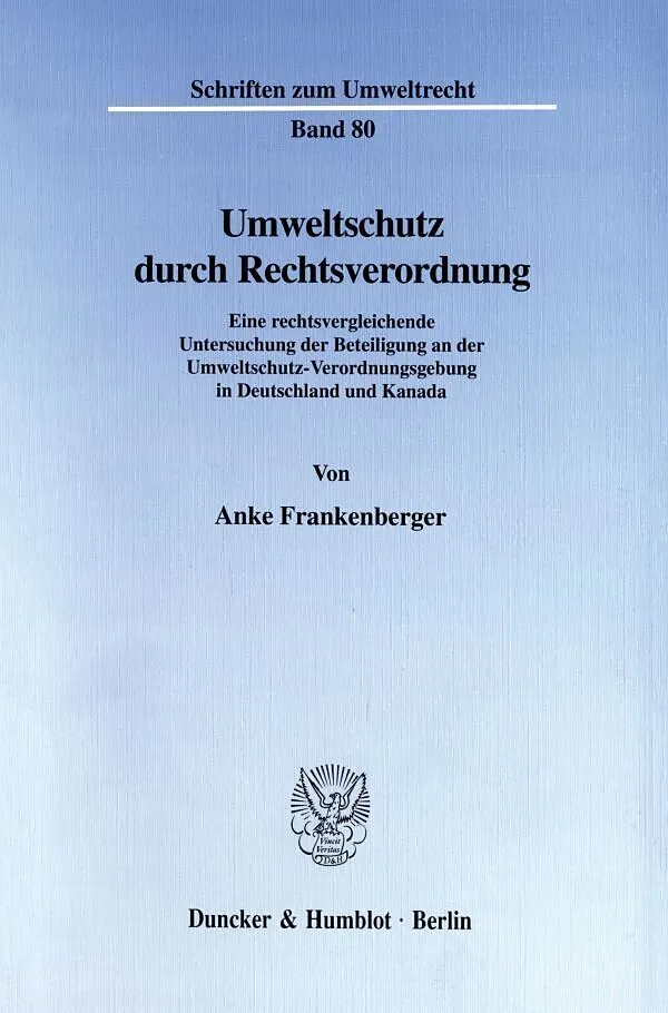 Die Arbeit hat zum Ziel, die Normsetzung der Exekutive stärker in die Rechtsformenlehre zu integrieren. Dazu wird das Verfahren der Verordnungsgebung in Deutschland und Kanada auf dem Gebiet des Umweltschutzes untersucht. Ausgehend von kanadischen Verfahrensge...Die Arbeit hat zum Ziel, die Normsetzung der Exekutive stärker in die Rechtsformenlehre zu integrieren. Dazu wird das Verfahren der Verordnungsgebung in Deutschland und Kanada auf dem Gebiet des Umweltschutzes untersucht. Ausgehend von kanadischen Verfahrensgestaltungen wird ein Vorschlag für verfahrensmäßige Neuordnung im deutschen Recht gemacht. Der Erste Teil berichtet allgemein über Verordnungsgebung im Umweltschutz in Deutschland und Kanada. Die Begriffe der verschiedenen Rechtsnormen, der Mitwirkung und Beteiligung werden geklärt und die rechtlichen Anforderungen an die Verordnungsgebung dargestellt. Im Zweiten Teil wird detailliert über Mitwirkung und Beteiligung an der Umweltschutz-Verordnungsgebung berichtet. Der kanadische Teil enthält zum besseren Verständnis einen Exkurs zur Verordnungsgebung in den USA. Wesentliches Kennzeichen von Beteiligungsverfahren in Kanada ist die Stakeholder Beteiligung, eine Beteiligung von Interessengruppen mit fließenden Grenzen zur Popularbeteiligung. Es werden Verfahren des kanadischen Umweltministeriums (z. B. Strategic Options Process) und diverse institutionalisierte Beratungsgremien vorgestellt. In Deutschland besteht eine sehr ausdifferenzierte Mitwirkung der Exekutive an der Umweltschutz-Verordnungsgebung. Erst nach deren Ablauf setzt Expertenbeteiligung ein, bei der vor allem Ingenieursvereinigungen eine zentrale Rolle zukommt. Es werden die institutionalisierten Beratungsgremien und die mitwirkende Kontrolle von Rechtsverordnungen durch den Bundestag behandelt. Den Abschluß bilden Überlegungen über mögliche Ursachen der in Kanada und Deutschland vorgefundenen unterschiedlichen Strukturen der Beteiligung. Im Dritten Teil werden zunächst theoretisch die Notwendigkeit, Zulässigkeit und Gebotenheit einer Neuregelung des Verfahrens der Umweltschutz-Verordnungsgebung erörtert, bevor ein dementsprechender rechtspolitischer Vorschlag gemacht wird. Den Abschluß der Arbeit bildet ein an die Vorschriften des Professoren-Entwurfs zum Umweltgesetzbuch angelehnter Verfahrensvorschlag.