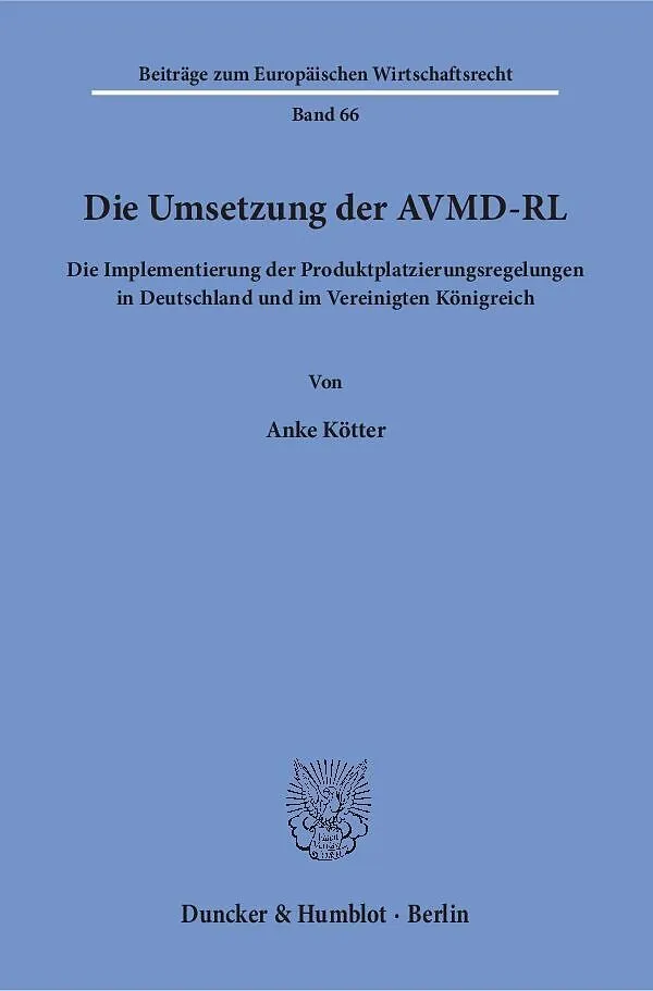 In Bezug auf Produktplatzierung in audiovisuellen Mediendiensten hat die AVMD-RL weitreichende rechtliche Änderungen herbeigeführt. Sie eröffnet Mediendiensteanbietern die Möglichkeit, Produktplatzierung als Werbeform in audiovisuellen Medien zu verwenden. Die...