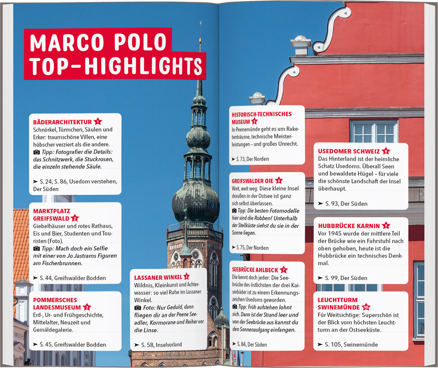 Ab auf die Insel mit dem MARCO POLO Reiseführer Usedom Auf Usedom erlebst du Urlaub, wie er dir gefällt. Magst du den touristischen Trubel der schicken Seebäder oder genießt du lieber die Ruhe am idyllischen Naturstrand? Entscheide dich jeden Tag neu! Mit dem...