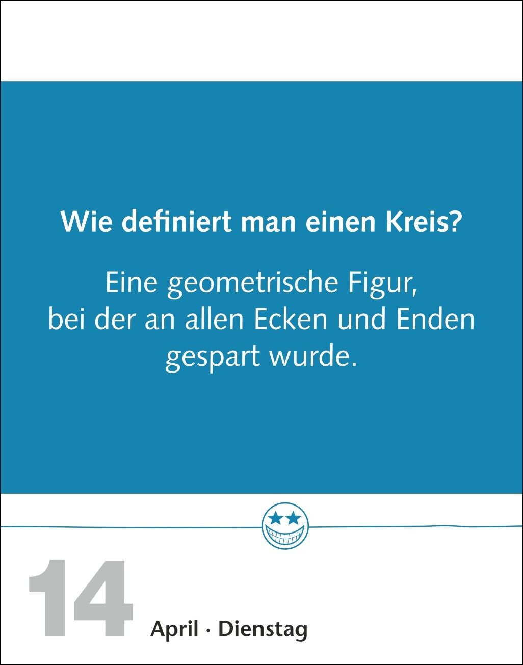 Spitze Pointen für die tägliche Dosis Humor: Dieser Witzekalender sorgt dafür, dass Sie den Tag mit einem Schmunzeln beginnen - Passt perfekt auf den Schreibtisch: Der kleine Kalender im Format 11 x 14 cm verbreitet überall gute Laune - Von Scherzfragen bis ...