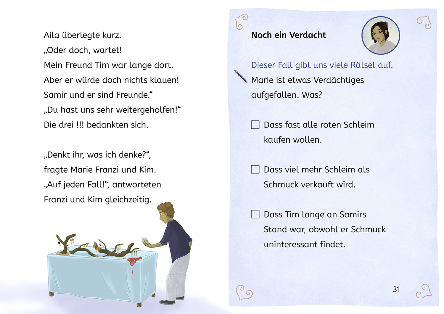 Kim, Franzi und Marie sind beste Freundinnen und Detektivinnen! Zusammen haben die drei !!! schon viele knifflige Fälle gelöst. Kim, Franzi und Marie verkaufen auf einem Markt im Jugendzentrum selbstgemachten Schleim. Als eine Kette am Nachbarstand verschwinde...