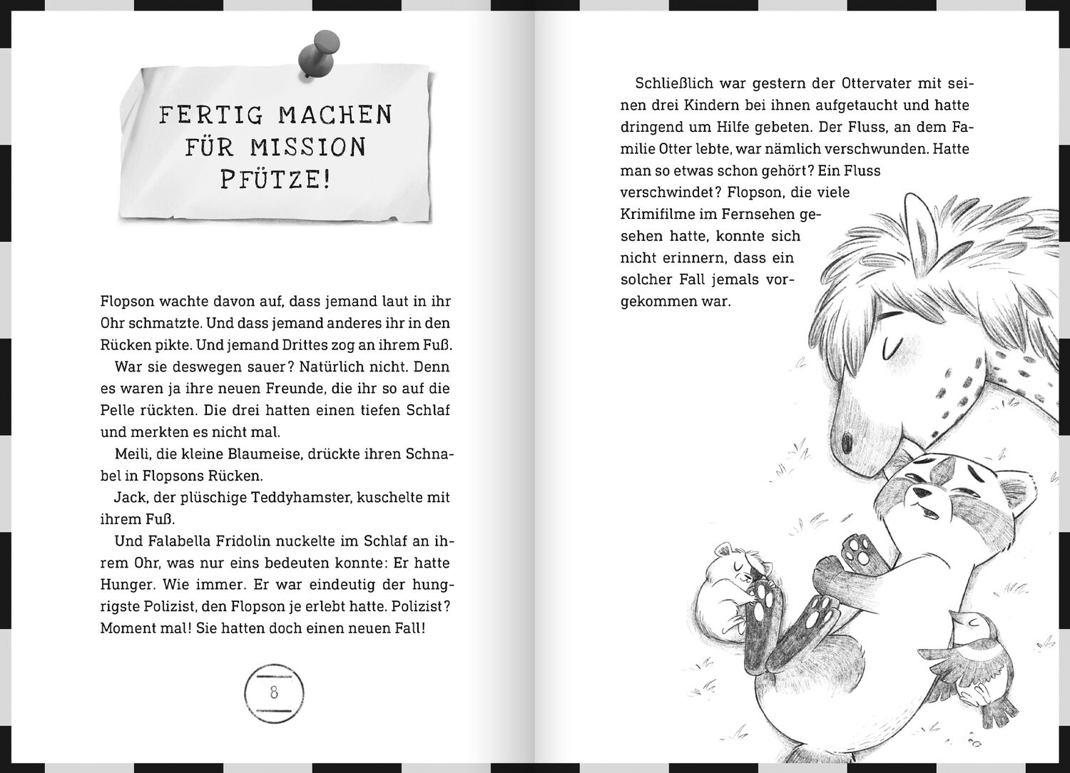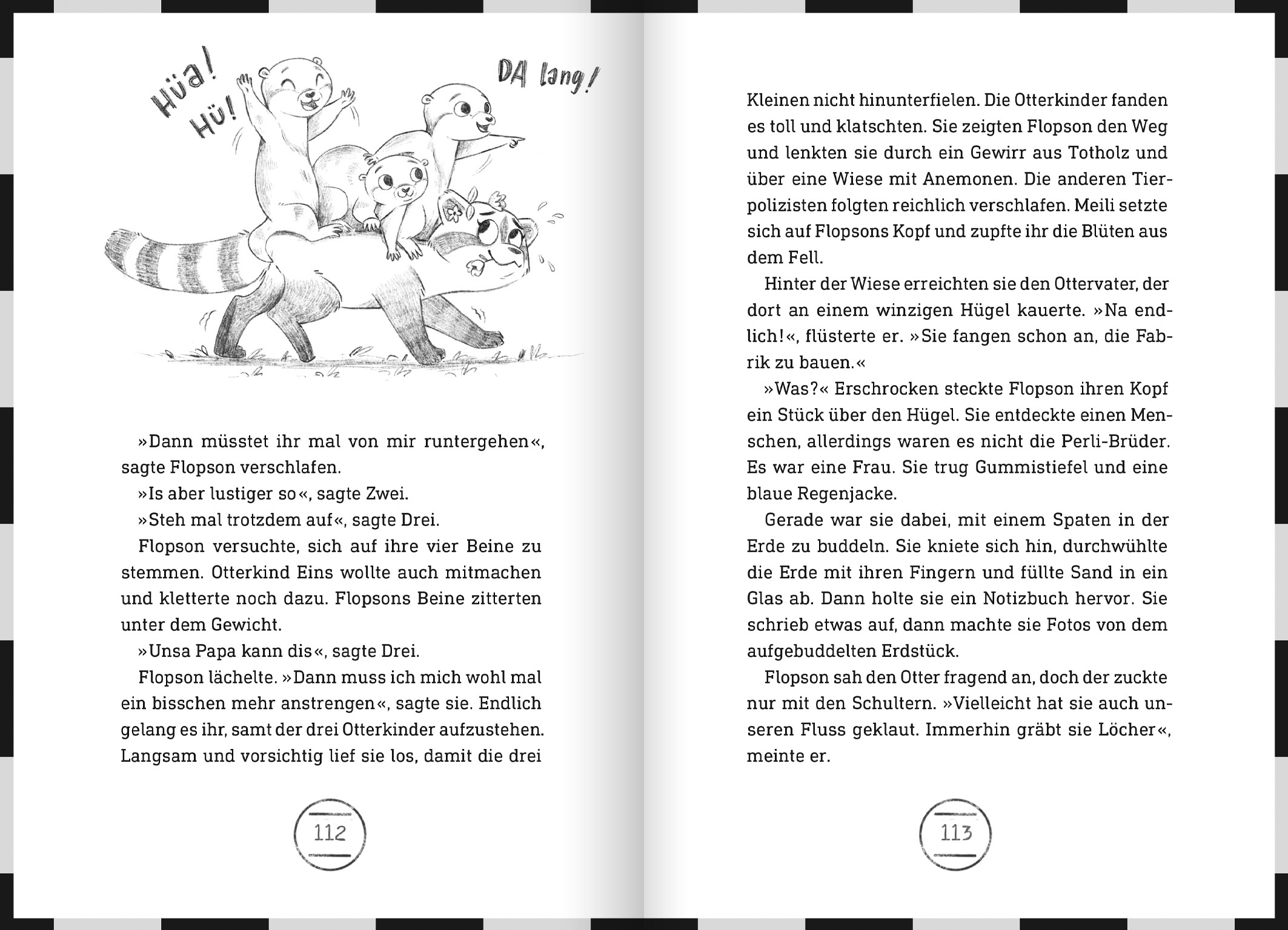 In "Die Tierpolizei 3. Mach nicht so 'ne Welle!" von Anna Böhm wird die Tierpolizei mit einem besonders dringenden Fall konfrontiert: Das Flüsschen, an dem eine Otterfamilie lebt, ist plötzlich vertrocknet. Die durstigen Otter suchen Hilfe bei der Tierpolizei...