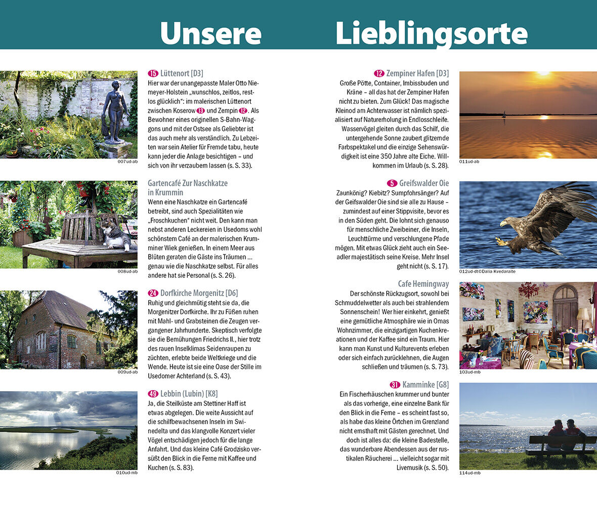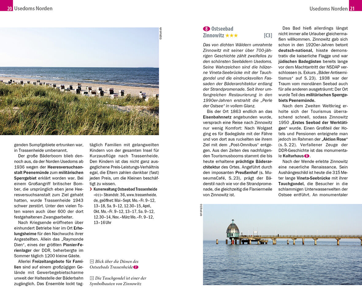 Usedom im nordöstlichen Zipfel Deutschlands gilt als einer der sonnenreichsten Flecken des Landes. Zahlreiche Seebäder reihen sich an der Ostseeküste auf, manche von ihnen mondän mit Seebrücke und belebter Promenade, andere sind beschauliche Orte der Ruhe. Ki...