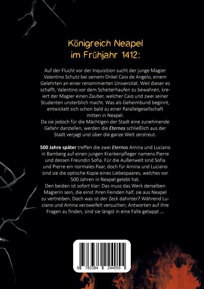 Im zerrütteten Königreich Neapel des Jahres 1412, in Zeiten von religiösem Fanatismus und grausamer Verfolgung Andersdenkender, verbündet sich eine Gruppe von Außenseitern und Magiern zu einem mächtigen Bund: Die 'Eternos' werden geboren. Doch nur ein Jahrhund...