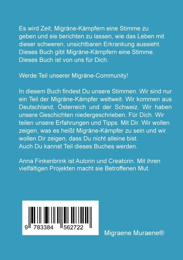 Es wird Zeit, Migräne-Kämpfern eine Stimme zu geben und sie berichten zu lassen, wie das Leben mit dieser schweren, unsichtbaren Erkrankung aussieht. Dieses Buch gibt Migräne-Kämpfern eine Stimme. Dieses Buch ist von uns für Dich. Werde Teil unserer Migräne-Co...