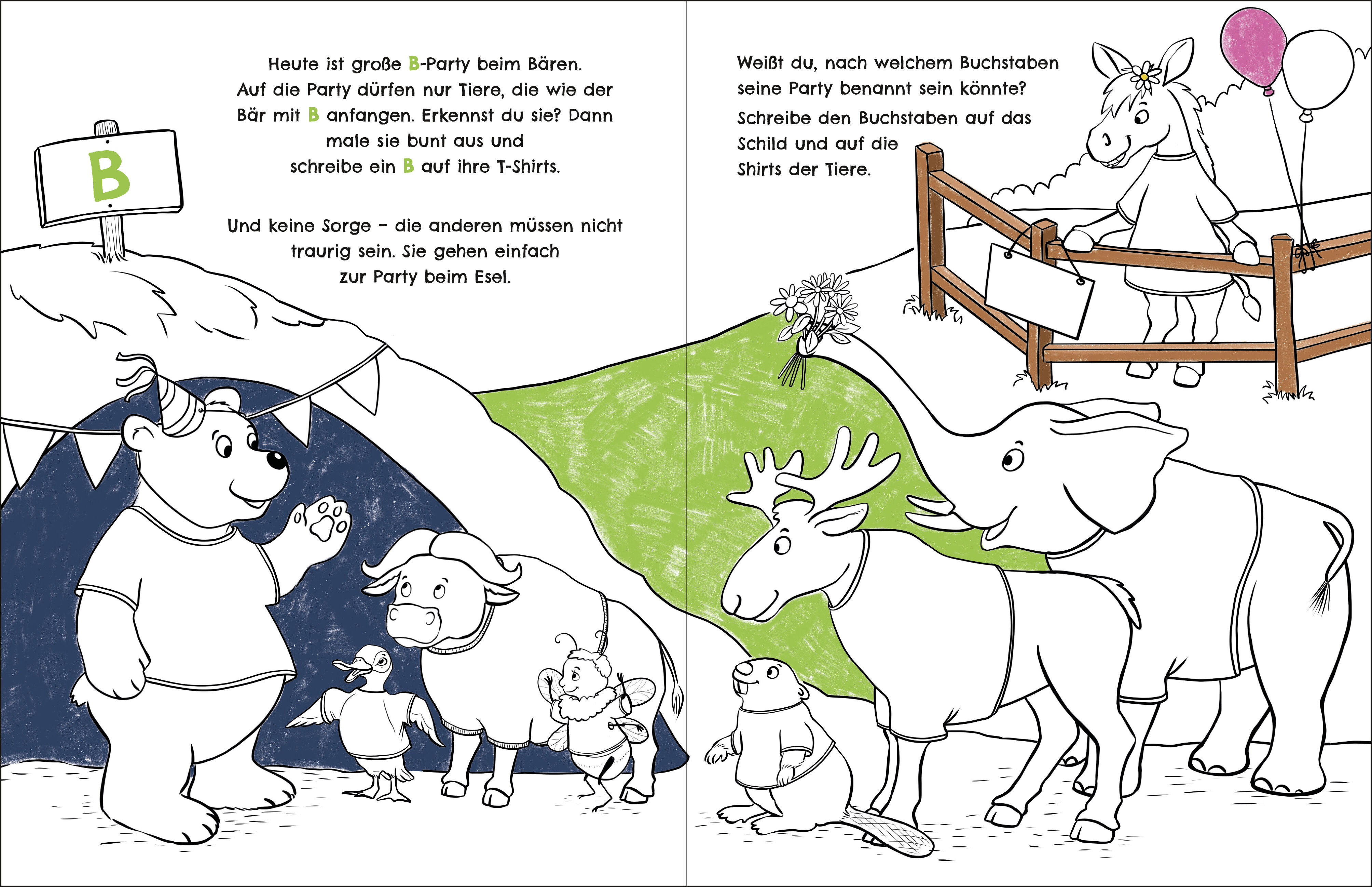 Lustige Kritzelbuch mit Mal- und Schreibaufgaben rund um das ABC Wer darf alles zur E-Party kommen? Male dem Vogel einen V-Schnabel! Und kannst du die Tiere mit ihren Anfangsbuchstaben verbinden? Mit originellen und lustigen Kritzelaufgaben macht dieses Malbu...