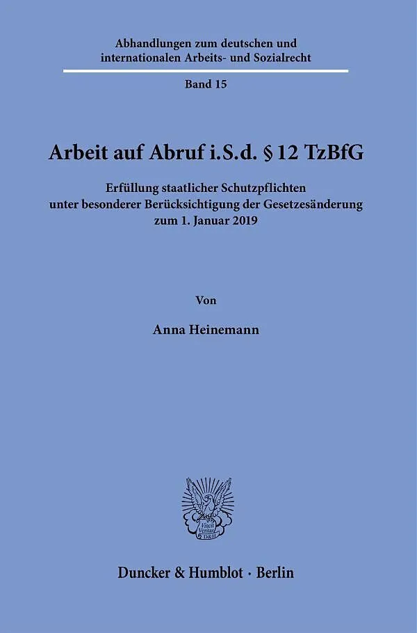 Bei Arbeit auf Abruf i.S.d. § 12 TzBfG handelt es sich um eine überwiegend im Arbeitgeberinteresse liegende Arbeitsform, bei der die Arbeitsleistung entsprechend dem Arbeitsanfall zu erbringen ist. Es wird untersucht, inwiefern der Gesetzgeber durch die zum 1....