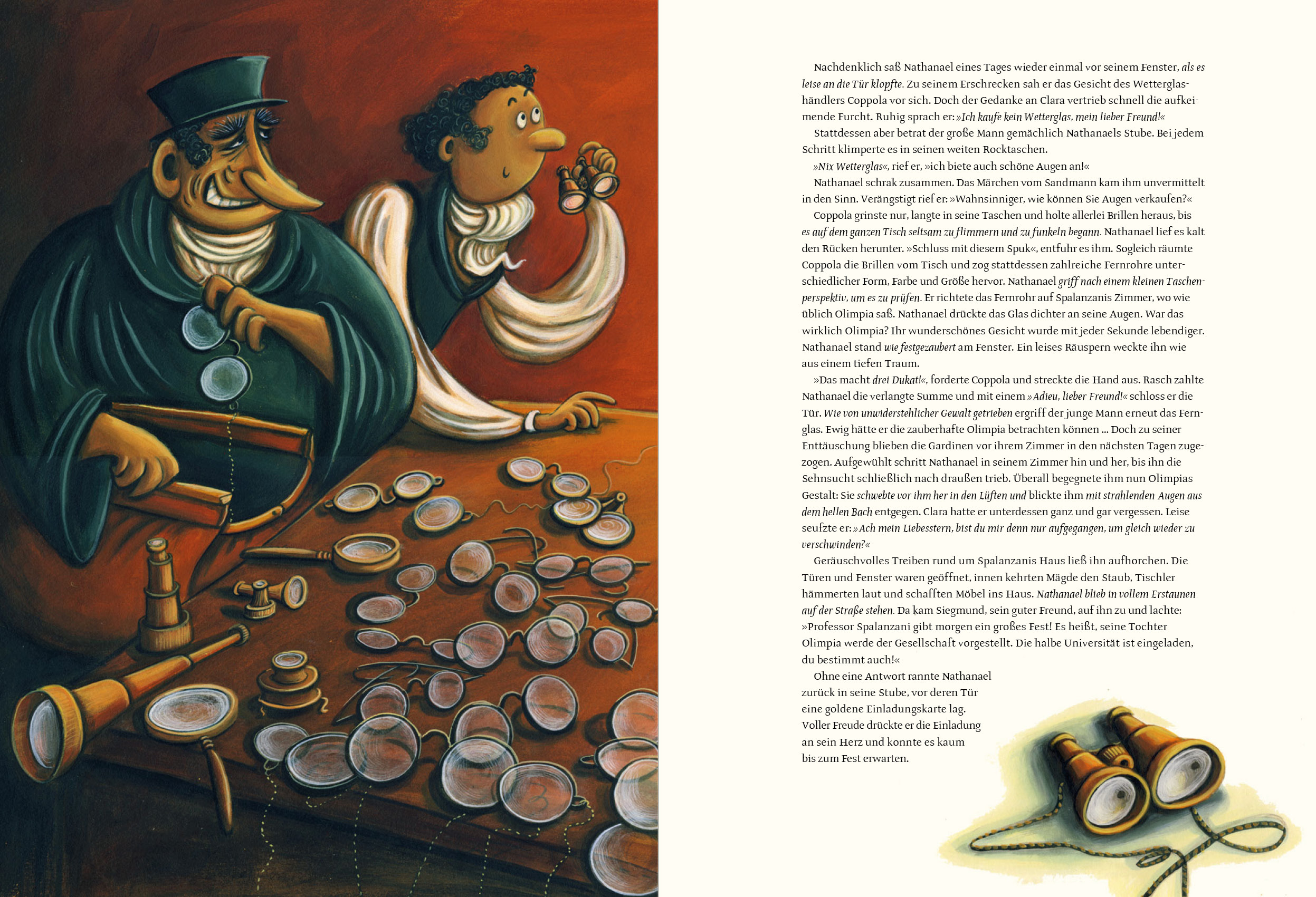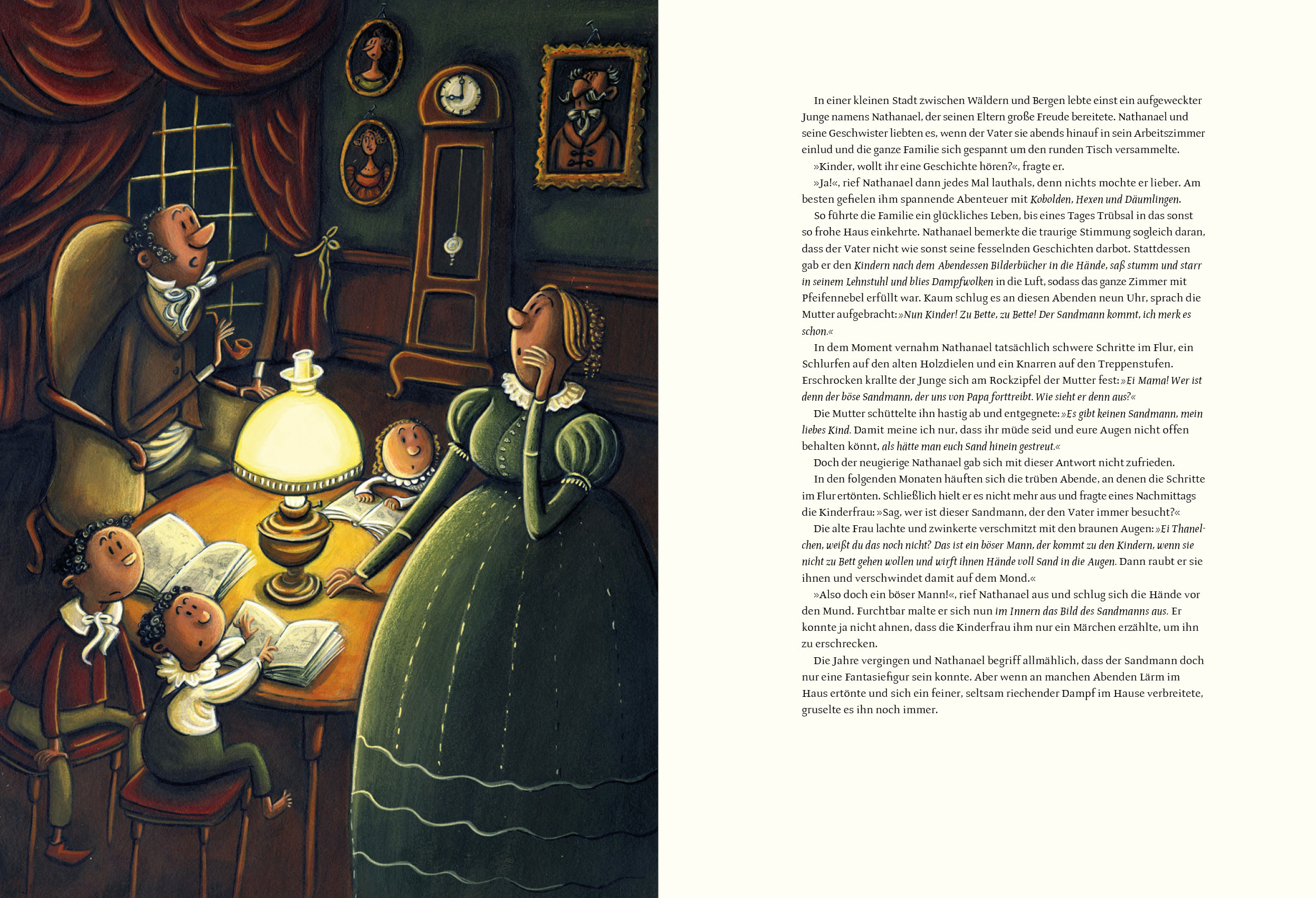 Der Sandmann nach E. T. A. Hoffmann. Eine schaurig-schöne Neuinterpretation des berühmten Klassikers! Wann immer der kleine Nathanael müde ist, erzählt ihm die Mutter vom geheimnisvollen Sandmann ein böser Mann, der unartigen Kindern nachts die Augen stiehlt u...