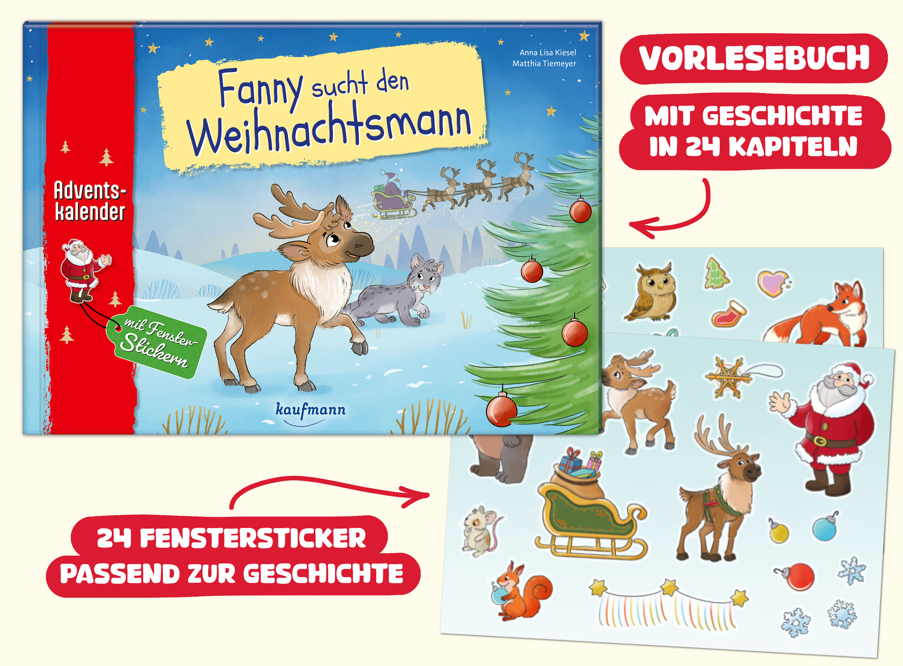 Adventskalender mit Vorlesegeschichte und 24 Fensterbildern: Rentiermädchen Fanny sucht den Weihnachtsmann für Kinder ab 4 Jahren. Fanny sucht den Weihnachtsmann Ein Buch-Adventskalender mit 24 Fensterbildern zum Aufkleben für Kinder ab 4 Jahren Die Geschichte...