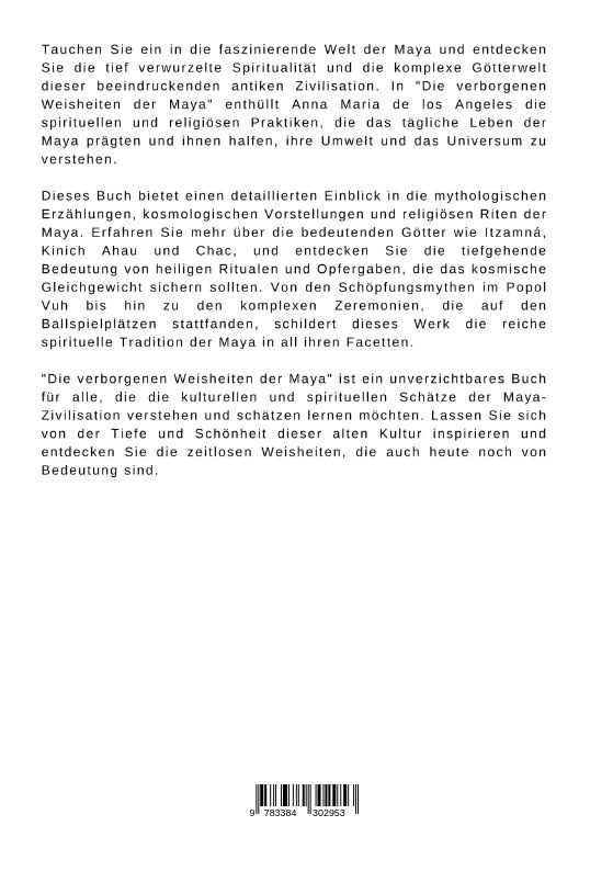 Tauchen Sie ein in die faszinierende Welt der Maya und entdecken Sie die tief verwurzelte Spiritualität und die komplexe Götterwelt dieser beeindruckenden antiken Zivilisation. In "Die verborgenen Weisheiten der Maya" enthüllt Anna Maria de los Angeles die spi...