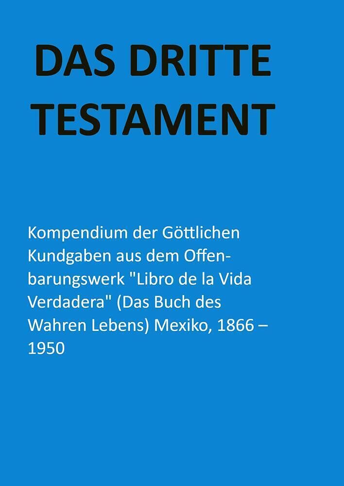 Das Dritte Testament - Kompendium der Göttlichen Kundgaben Herausgeber und Übersetzer vom spanischen ins deutsche: Traugott Göltenboth; Mitarbeiter: Victor P. Martens Herausgeber der spanischen Originalausgabe "Libro de la Vida Verdadera" in 12 Bände...