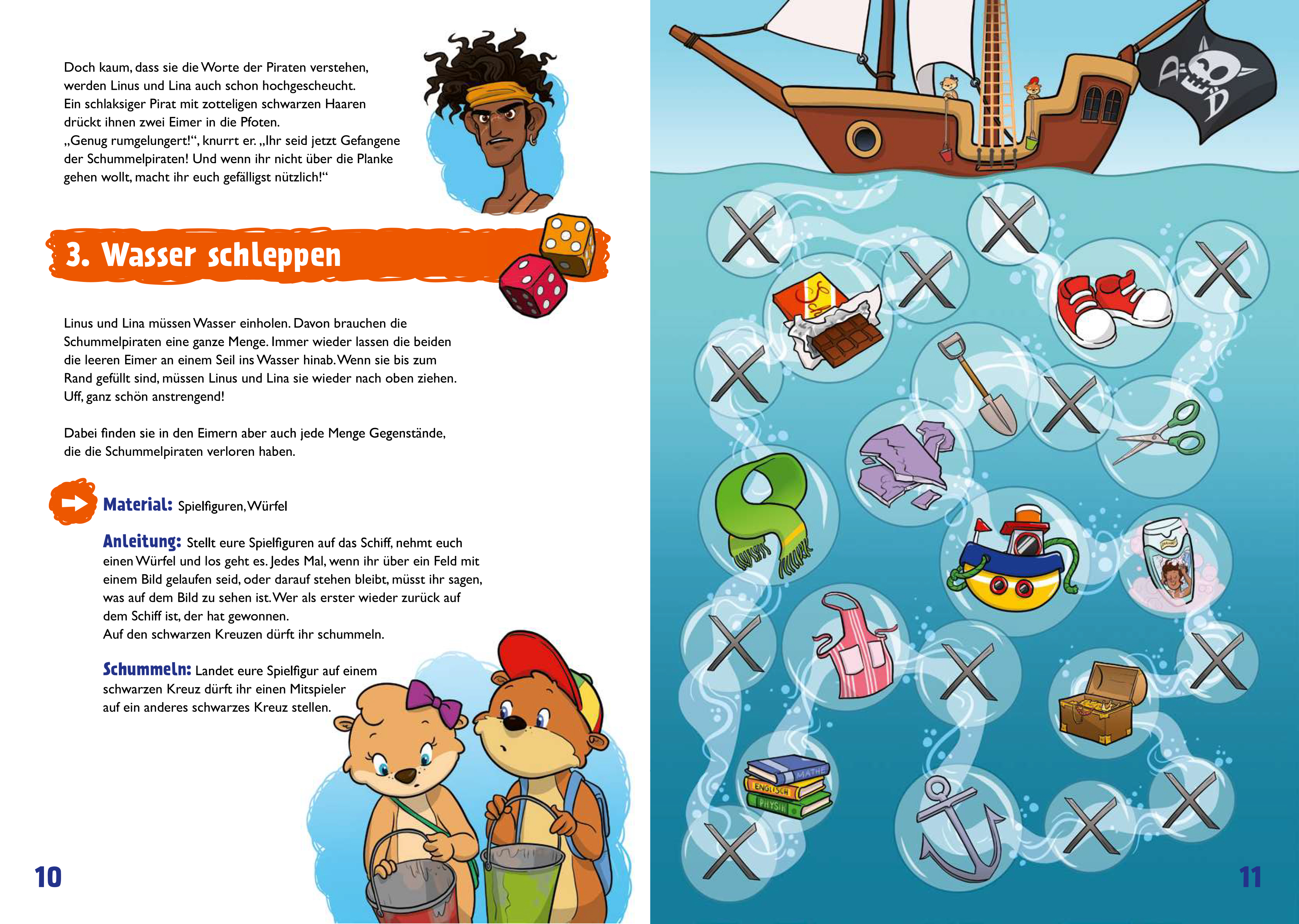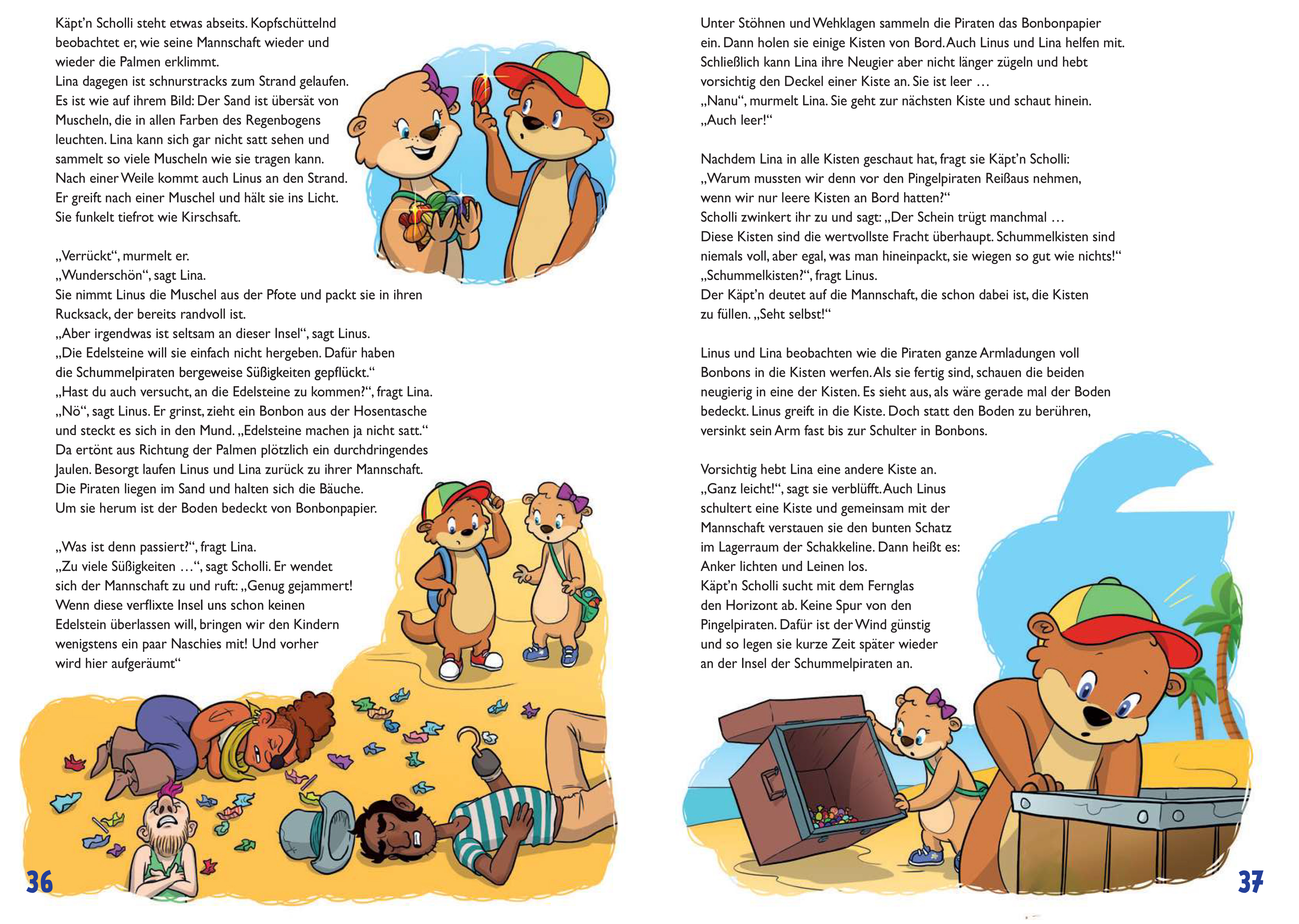 In diesem Abenteuer wollen Linus und Lina durch den magischen Strudel in ihrem See auf die Insel der Regenbogenmuscheln reisen, doch auf dem Weg dorthin werden sie von den Schummelpiraten aufgegriffen. Steuermann Schnute und Käpt'n Scholli entpuppen sich aller...