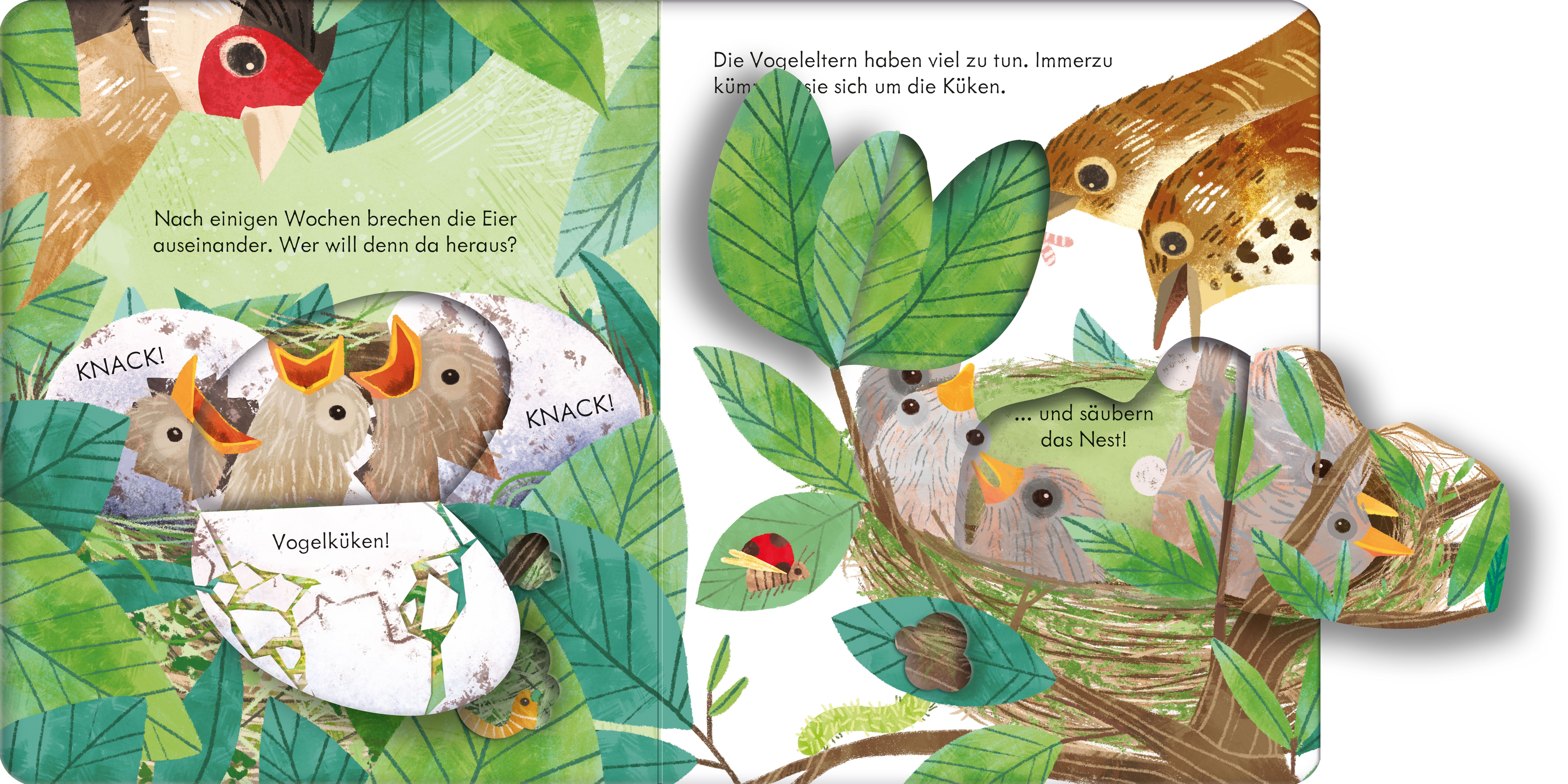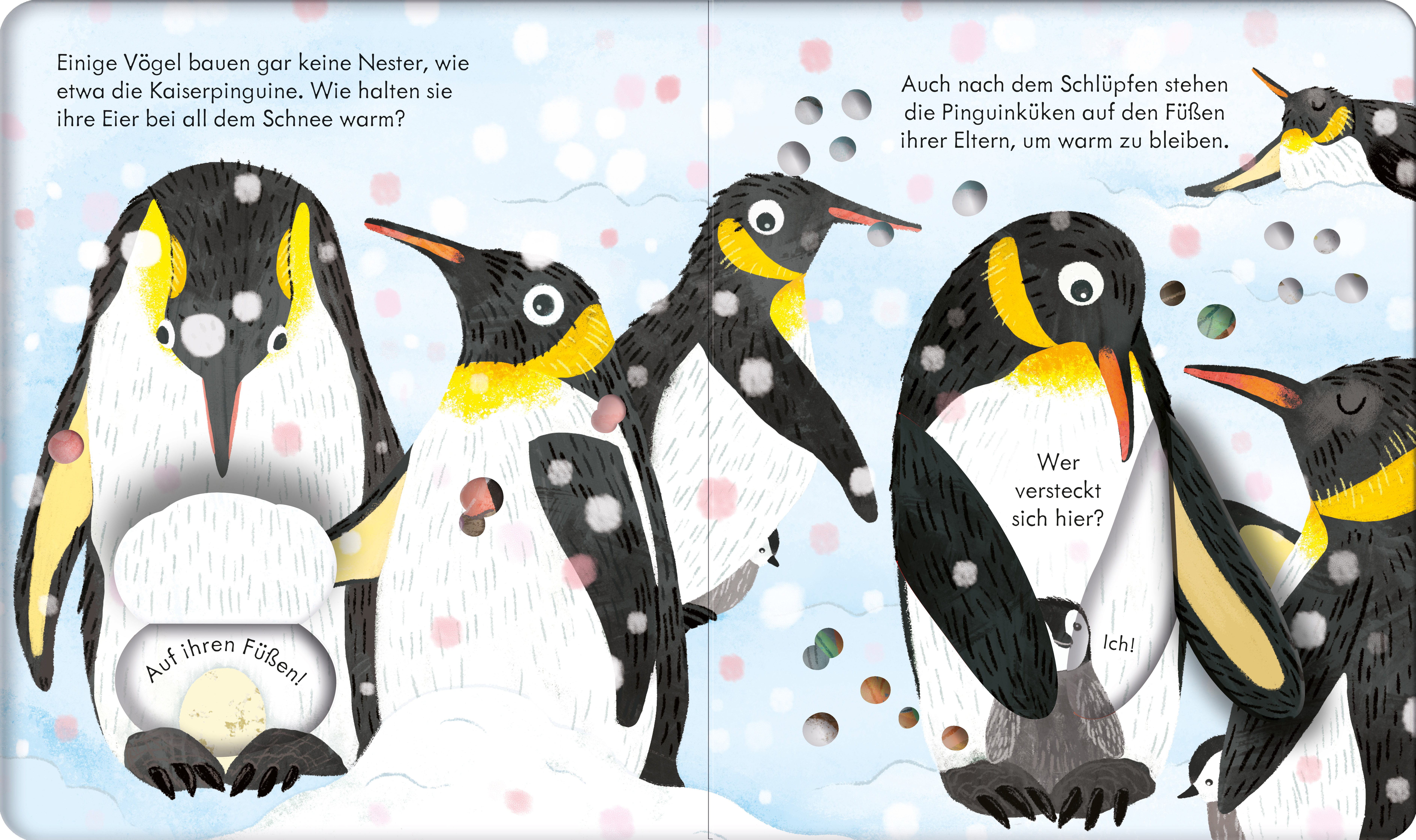 Wie bauen Vögel ihre Nester? Welches ist das kleinste Vogelnest der Welt? Und wo brüten Flamingos ihren Nachwuchs aus? Sieh unter Klappen und durch Gucklöcher und finde heraus, wie verschiedene Vogelarten ihre Jungen aufziehen. Besuch im Zuhause der Vögel ein...