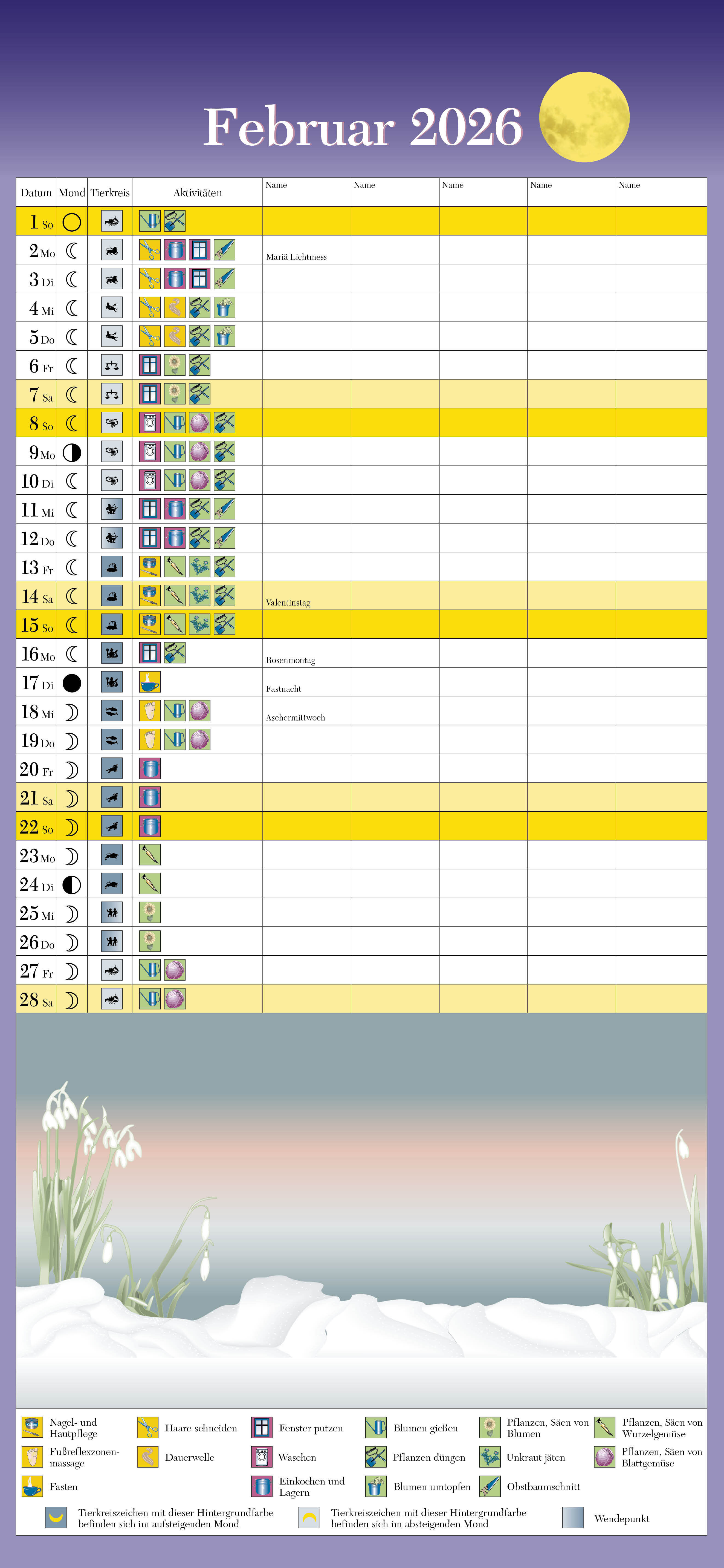 Mit dem Mond das Familienleben organisieren Der beste Zeitpunkt um Haare zu schneiden, einen Fastentag einzulegen oder dem Körper etwas Gutes zu tun, hängt vom jeweiligen Stand des Mondes im Tierkreiszeichen ab. Ihn zu nutzen und die Aktivitäten in Haushalt un...
