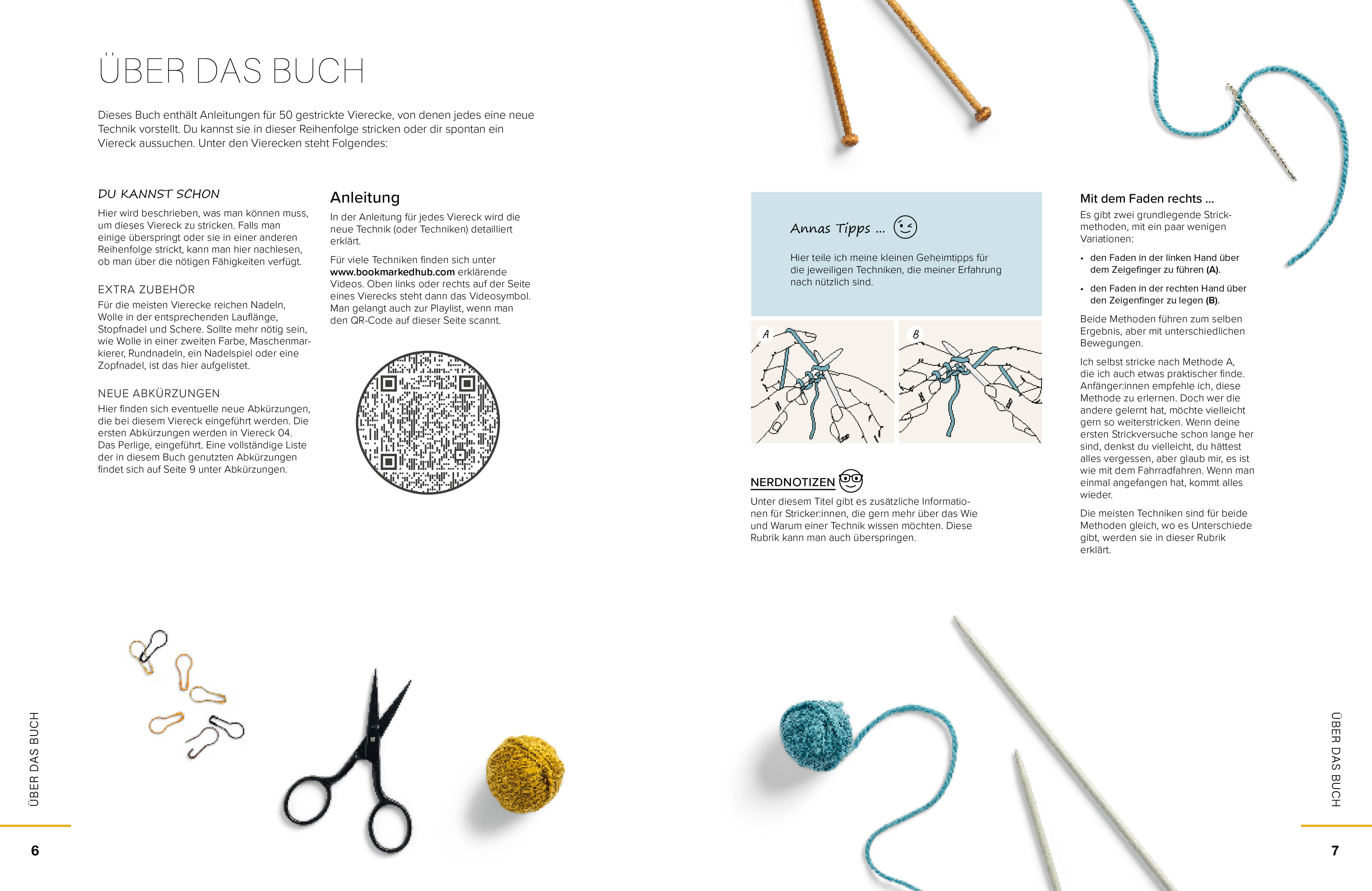 Der Lernweg ist in diesem Strickbuch für Anfänger klar gegliedert: In fünf Kapiteln werden grundlegende Techniken eingeführt, anschließend folgen einfache Strickmuster wie kraus rechts und glatt rechts. Der Schwierigkeitsgrad steigert sich dann, man lernt das Stricken von Lochmuster, Zöpfe, Intarsien und Brioche. Die Strickanleitungen werden durch Illustrationen, Strickschriften und QR-Videos ergänzt. Hinweise für Linkshänder, Tipps zur Garnwahl sowie Varianten und Strickprojekte für Formate wie Babydecken machen das Konzept flexibel.