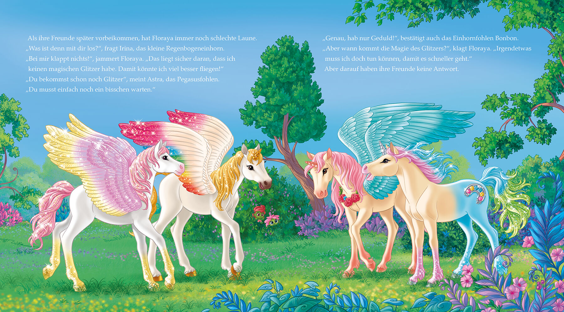 In der magischen Welt von Bayala® lebt das geflügelte Einhornfohlen Floraya. Das wunderschöne Fohlen wünscht sich nichts sehnlicher, als endlich die Magie des Glitzers zu bekommen und wie die anderen geflügelten Einhörner durch die Wolken zu fliegen. Schließli...