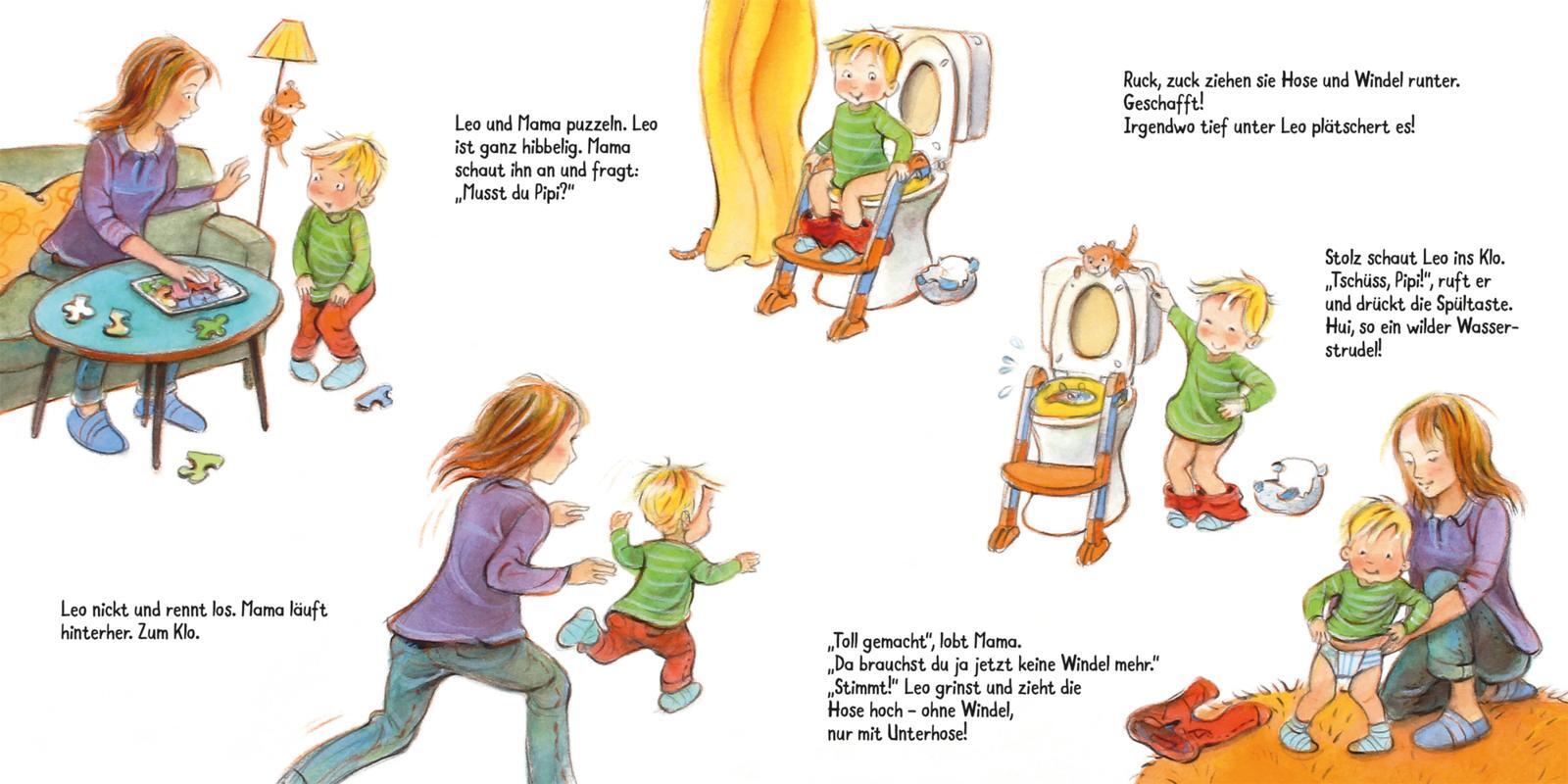 Endlich windelfrei: Eine ermutigende Geschichte ab 24 Monaten über Trockenwerden und Toilettentraining Leo ist schon groß - er will keine Windel mehr. Aber fürs Mama-Papa-Klo ist er noch zu klein. Und nun? Töpfchen, Toilettenaufsatz oder Toilettentrainer? Leo...