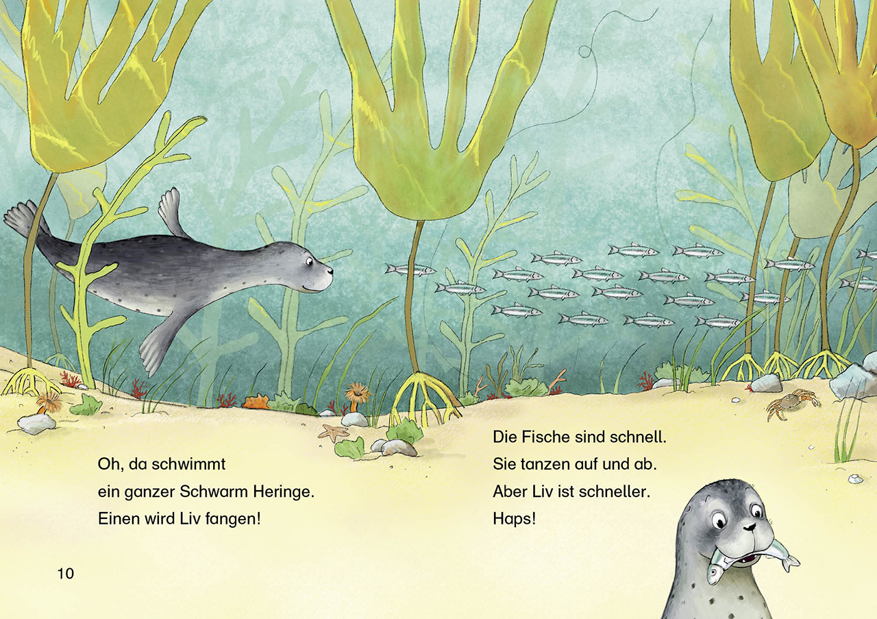 mit Spotlack und Stickerbogen Der kleine Seehund taucht fröhlich durch die Wellen, doch plötzlich zieht ein Sturm auf. Als das Wasser wieder ruhig ist, hat er sich im Meer verirrt. Wo geht es bloß nach Hause? Der kleine Seehund erlebt ein spannendes Abenteuer ...
