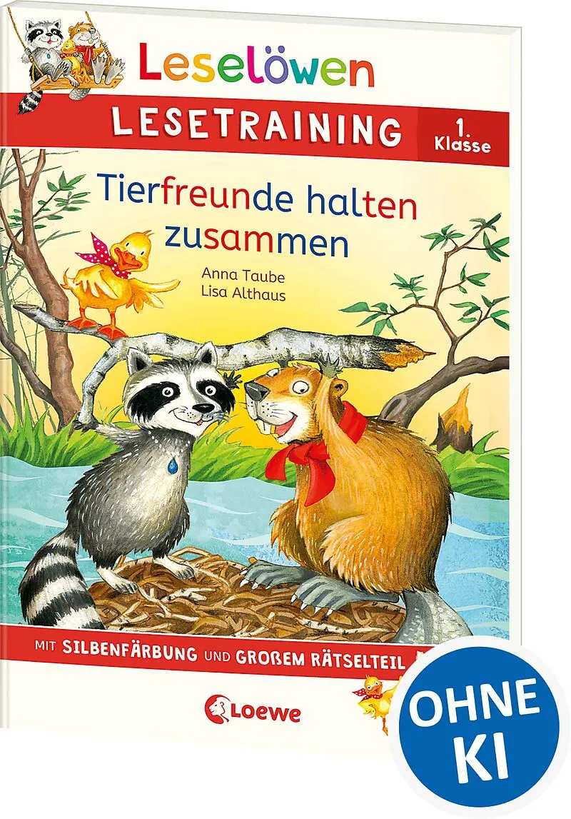 Loewe-Bücher: garantiert ohne KI Lesenlernen leicht gemacht mit dem Leselöwen Lesetraining 1. Klasse Der kleine Biber Nonni wird von Waschbär Ruki und Ente Fibi aus dem wilden Fluss gerettet. Doch es regnet und regnet und das Wasser steigt immer höher! Können ...