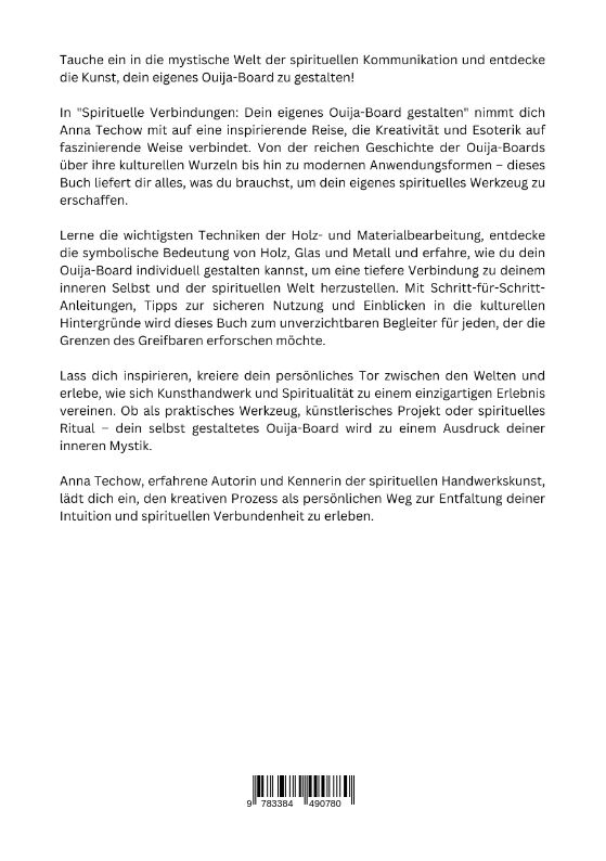 In "Spirituelle Verbindungen: Dein eigenes Ouija-Board gestalten" nimmt dich Anna Techow mit auf eine inspirierende Reise, die Kreativität und Esoterik auf faszinierende Weise verbindet. Von der reichen Geschichte der Ouija-Boards über ihre kulturellen Wurzeln...