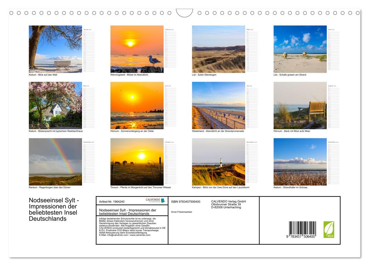 Nodseeinsel Sylt - Impressionen der beliebtesten Insel Deutschlands (Wandkalender 2026 DIN A3 quer), CALVENDO Monatskalender