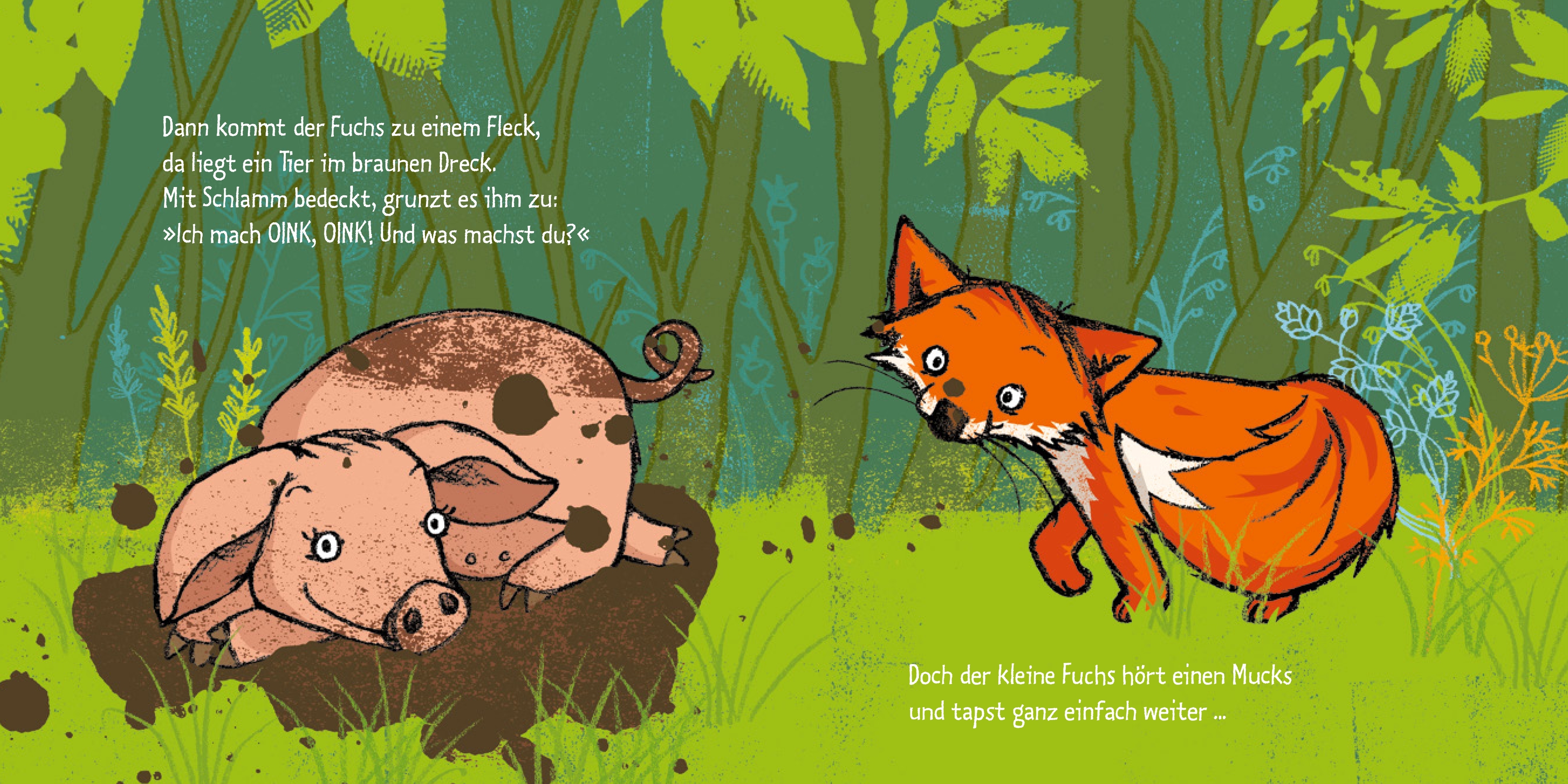 In "Der kleine Fuchs hört einen Mucks" von Anne Kristin zur Brügge geht es um einen kleinen Fuchs, der im Wald einen geheimnisvollen Laut hört und sich auf die Suche nach dessen Ursprung macht. Auf seiner Reise trifft er auf verschiedene Tiere wie eine Kuh, e...