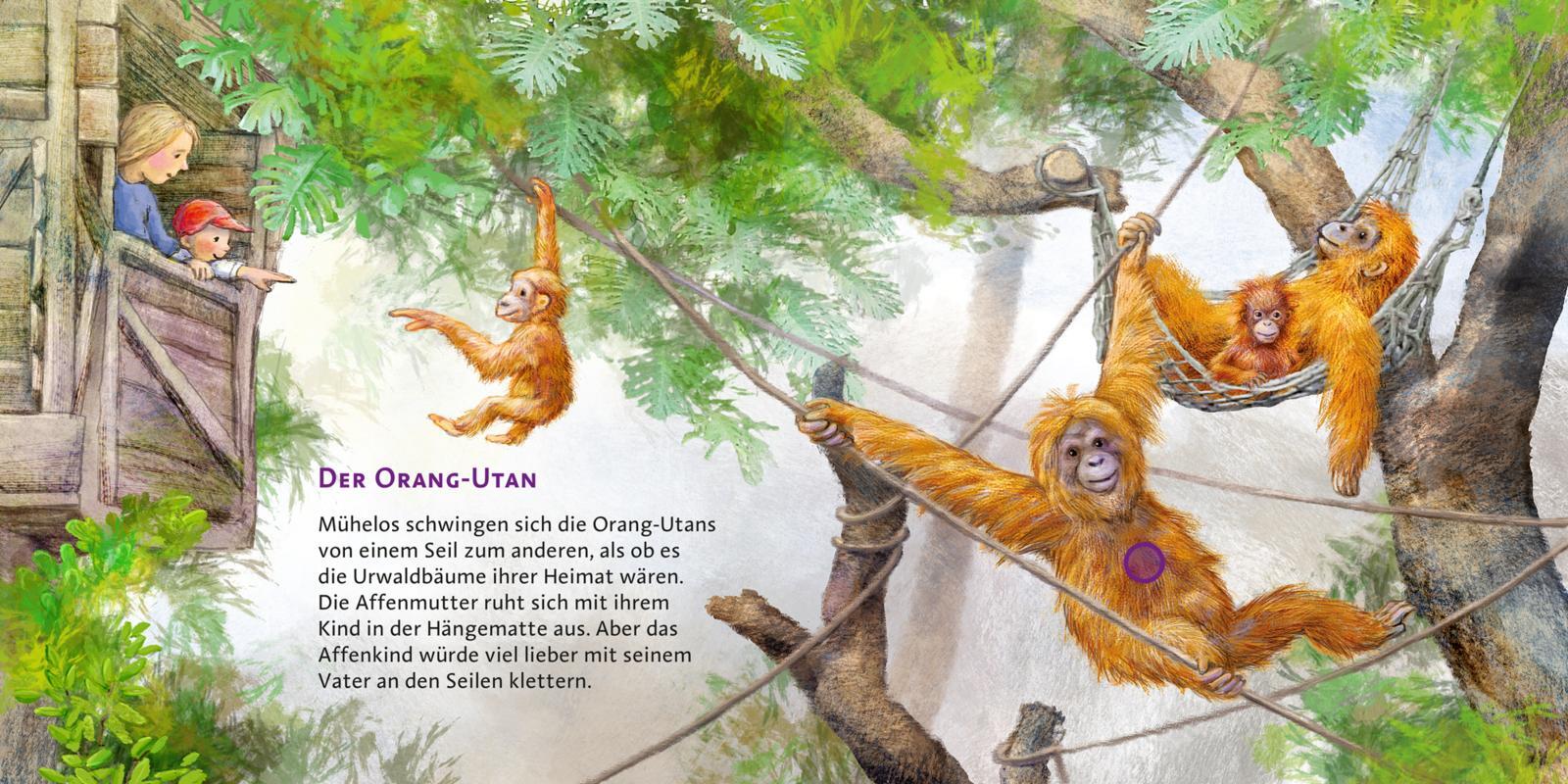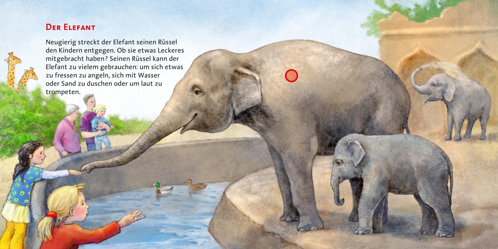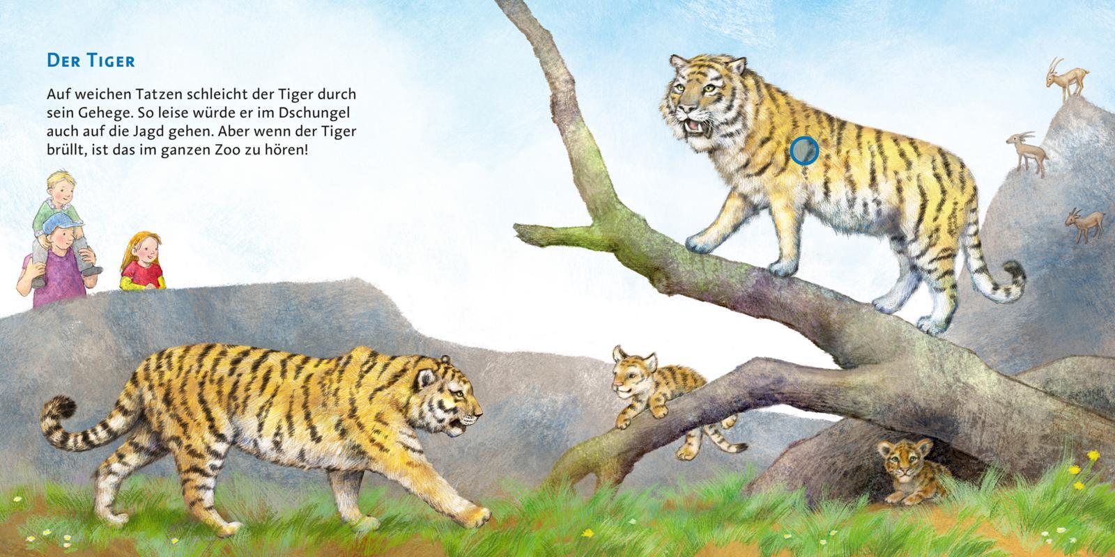 Füttern verboten - Gucken und Zuhören erlaubt! Ein Zoobesuch macht immer Spaß: Mit lautem Getröte begrüßt der Elefant die Zoobesucher, schon begegnet uns der prächtige Pfau - weißt du was für Geräusche er macht? Wie gut, dass der Tiger im Käfig ist - er faucht...