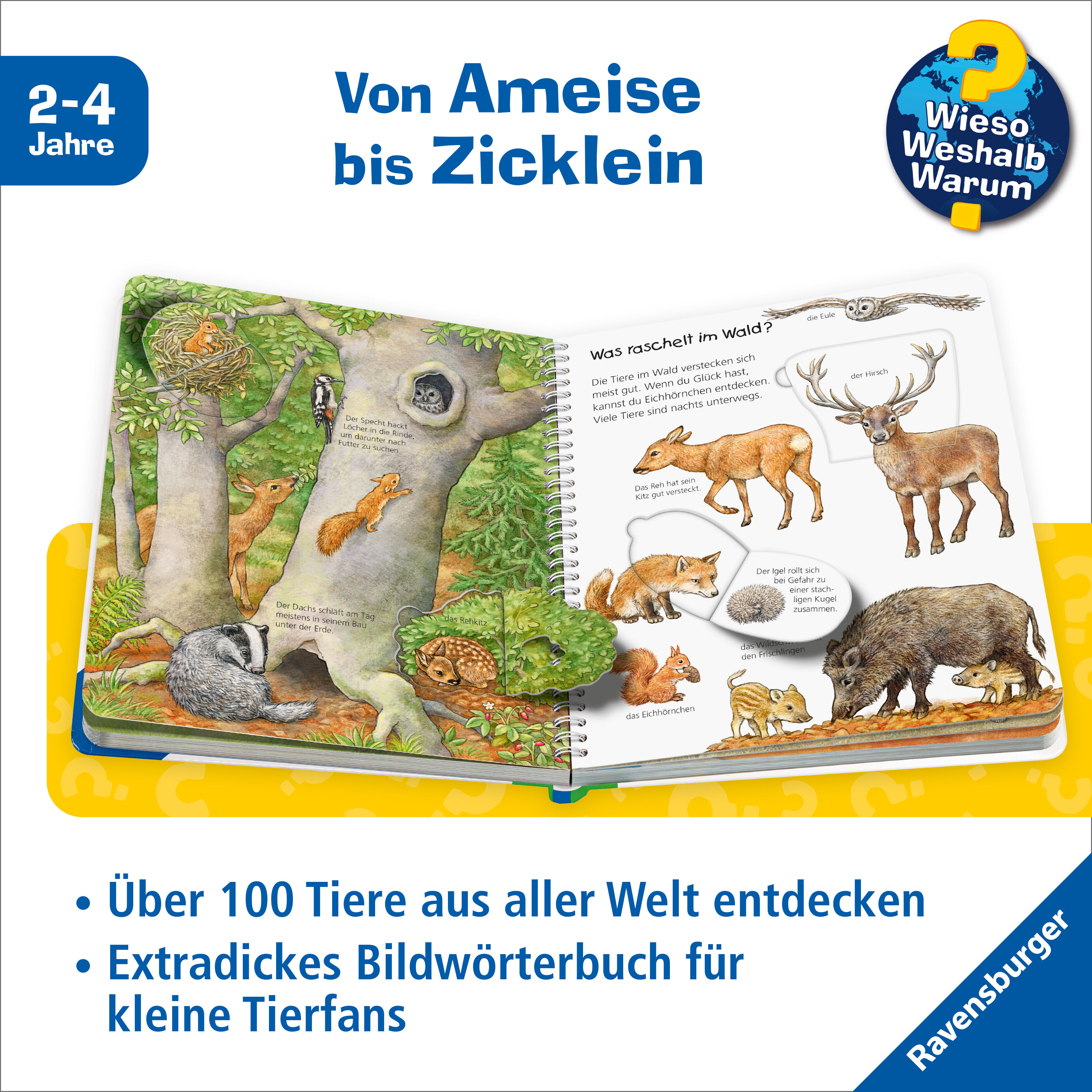 Wieso? Weshalb? Warum? Mein junior-Lexikon: Tiere Zu welchem Tier gehören Lamm und Zicklein? Wie stark ist eine Ameise? Und wovon ernährt sich der Kolibri? In diesem Bilderlexikon lernen Kinder auf zwölf Doppelseiten die faszinierende Welt der Tiere kennen. Ne...