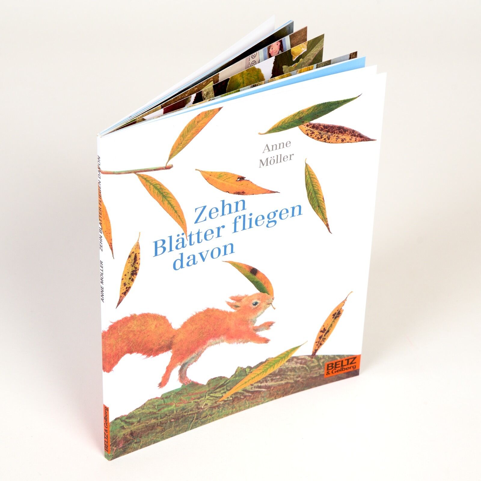 Zehn Weideblätter lösen sich im Herbststurm von den Ästen. Ein Blatt landet im Wasser, andere Blätter auf der Erde. Das freut Mensch und Tier: Kinder sammeln die Blätter und basteln daraus Laternen und Boote. Ein Eichhörnchen trägt ein Blatt ins Nest, einer He...