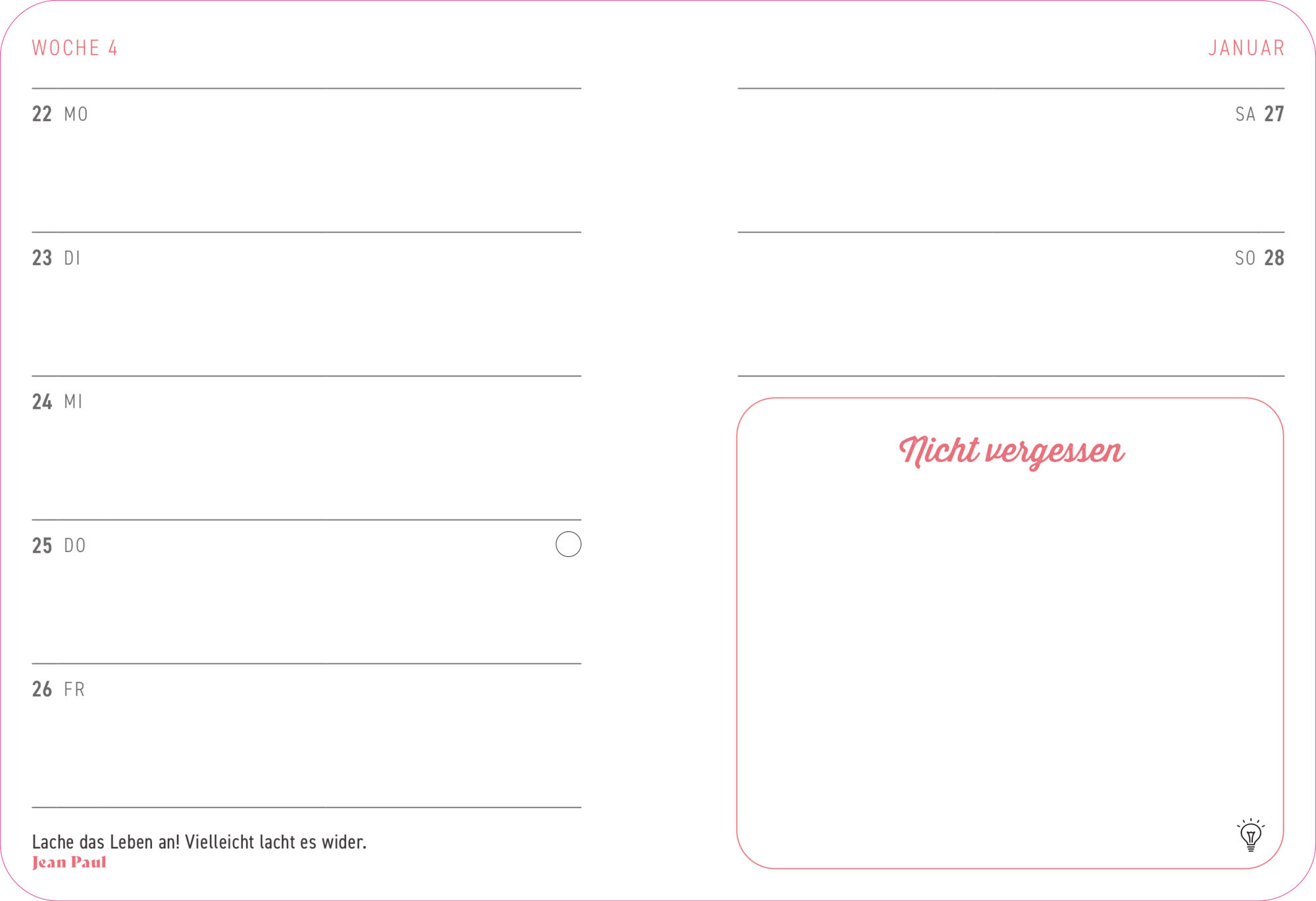 Für kleine Pläne und große Träume: Dieser hochwertige Taschenkalender im modernen Design ist dein perfekter Begleiter für jeden Tag. TERMINPLANER 2024: 144 Seiten im handlichen Format HOCHWERTIGE QUALITÄT: Gut aufklappbares Hardcover, Gummiband, Leseband, farb...
