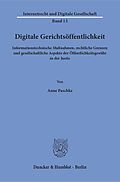 Die Arbeit widmet sich der rechtlichen und technischen Gestaltung einer verfassungskonformen digitalen Öffentlichkeitsgewähr (Streaming der Verhandlungen, Open Data der Akten) unter Berücksichtigung der Rechte von Verfahrensbeteiligten. Konkrete Reformvorschlä...Die Arbeit widmet sich der rechtlichen und technischen Gestaltung einer verfassungskonformen digitalen Öffentlichkeitsgewähr (Streaming der Verhandlungen, Open Data der Akten) unter Berücksichtigung der Rechte von Verfahrensbeteiligten. Konkrete Reformvorschläge knüpfen an die E-Justice-Entwicklung der letzten Jahre an. Unter dem Leitbild »Rechtsschutz durch Technikgestaltung« entwickelt die Autorin ein Modell zeitgemäßer, tatsächlich wirksamer externer Legitimation und Kontrolle der Justiz.