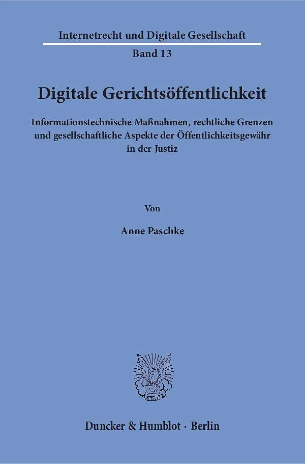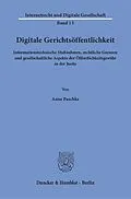 Einleitung 1. Begriff und Funktionen von Öffentlichkeit Öffentlichkeit als Rechtsbegriff Funktionen von Öffentlichkeit Systemelemente der Öffentlichkeit in staatlichen Verfahren Öffentlichkeit. Bedeutungen, Funktionen und Dimensionen: ein Fazit 2. Gerichtsöffentlichkeit als Verfahrensgrundsatz und Organisationsprinzip Die Gerichte als Organ der Rechtspflege in der bürgerlichen Sphäre Gerichtsöffentlichkeit: Teil der Rechtsprechung oder Organisationsgrundsatz? Modi der Herstellung von Gerichtsöffentlichkeit Öffentlichkeitsbedürftige Informationen 3. Digitalisierung als rechtlich relevante Größe Technologische Entwicklung und digitale Transformation Digitalisierung als Thema der Rechtsordnung Digitalisierung der Rechtsanwendung und Weiterentwicklung der Justiz Digitalisierung und Recht: ein Fazit 4. Digitalisierung und (Gerichts-)Öffentlichkeit Der virtuelle Raum als öffentlicher Raum IT als Garant der Öffentlichkeitsfunktionen!? Öffentlichkeitsermöglichende und -begrenzende technische Lösungen Digitalisierung und Gerichtsöffentlichkeit Gesellschaftlicher Wandel und Öffentlichkeit: ein Fazit 5. (Verfassungs-)Rechtliche Grenzen bei der Digitalisierung der Gerichtsöffentlichkeit Digitale Gerichtsöffentlichkeit im Lichte des Grundgesetzes Grenzen der digitalen Gerichtsöffentlichkeit Förderung der digitalen Gerichtsöffentlichkeit: de lege ferenda Folgen der verfassungsimmanenten Schranken für die unterschiedlichen Dimensionen der Öffentlichkeit Verfassungsrechtliche Konturen und Spielräume für digitale Gerichtsöffentlichkeit: ein Fazit Schlussbetrachtung Literatur- und Stichwortverzeichnis
